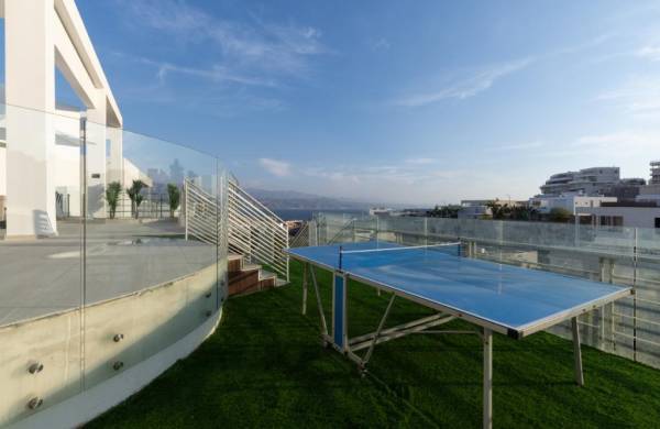 חדר משחקים הכולל מערכת ישיבה נינוחה, טלוויזיה, סוני פלייסטיישן ושולחן פינג פונג