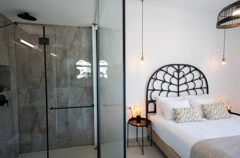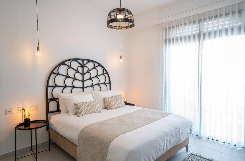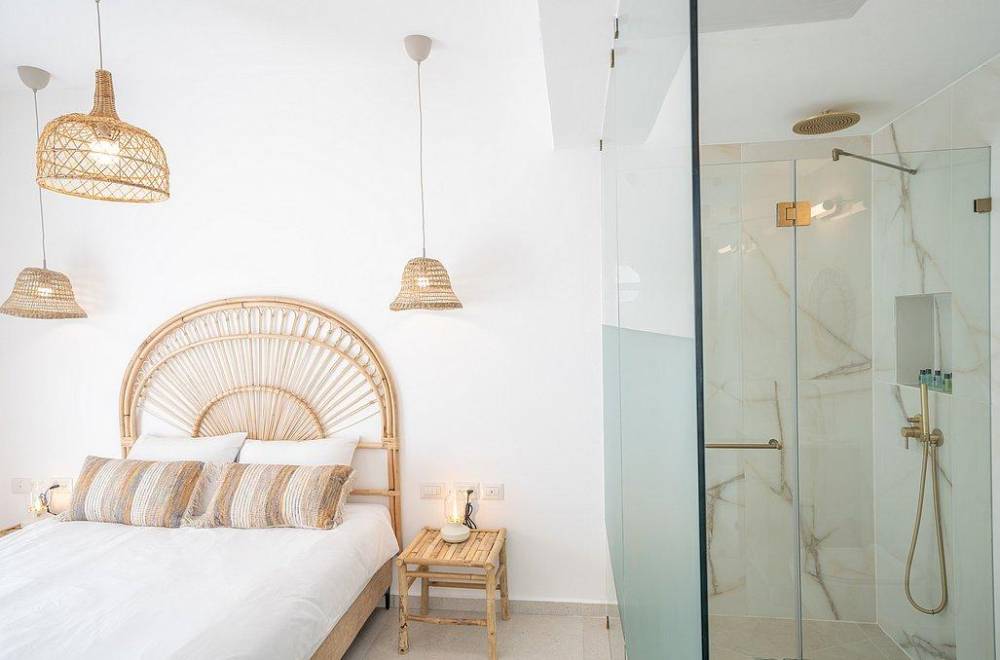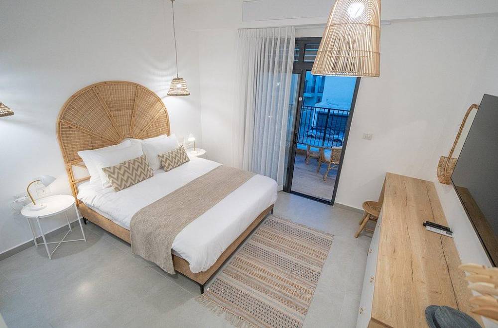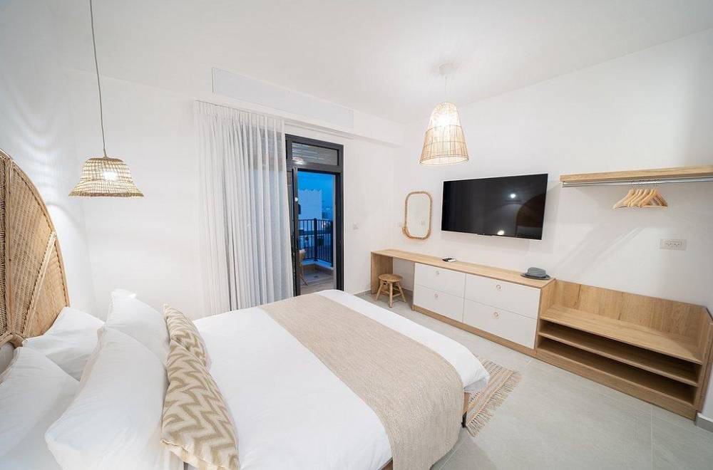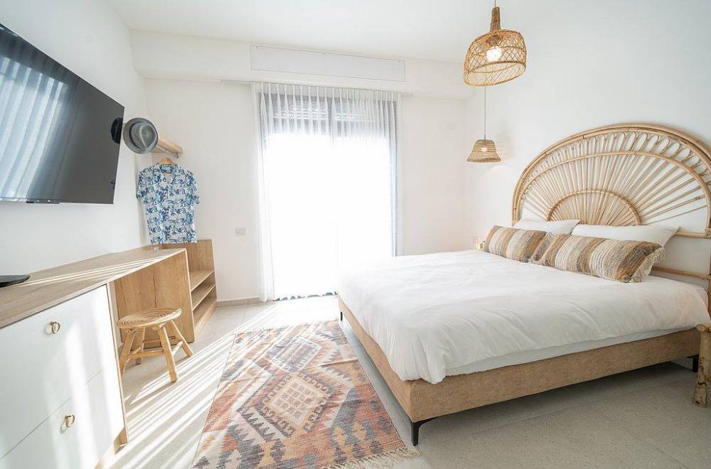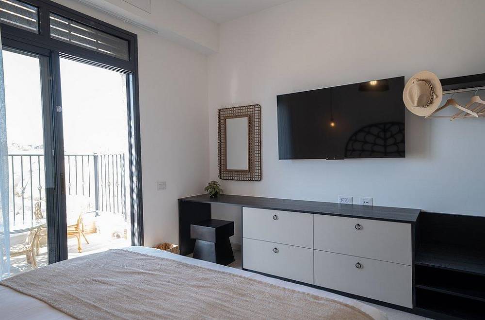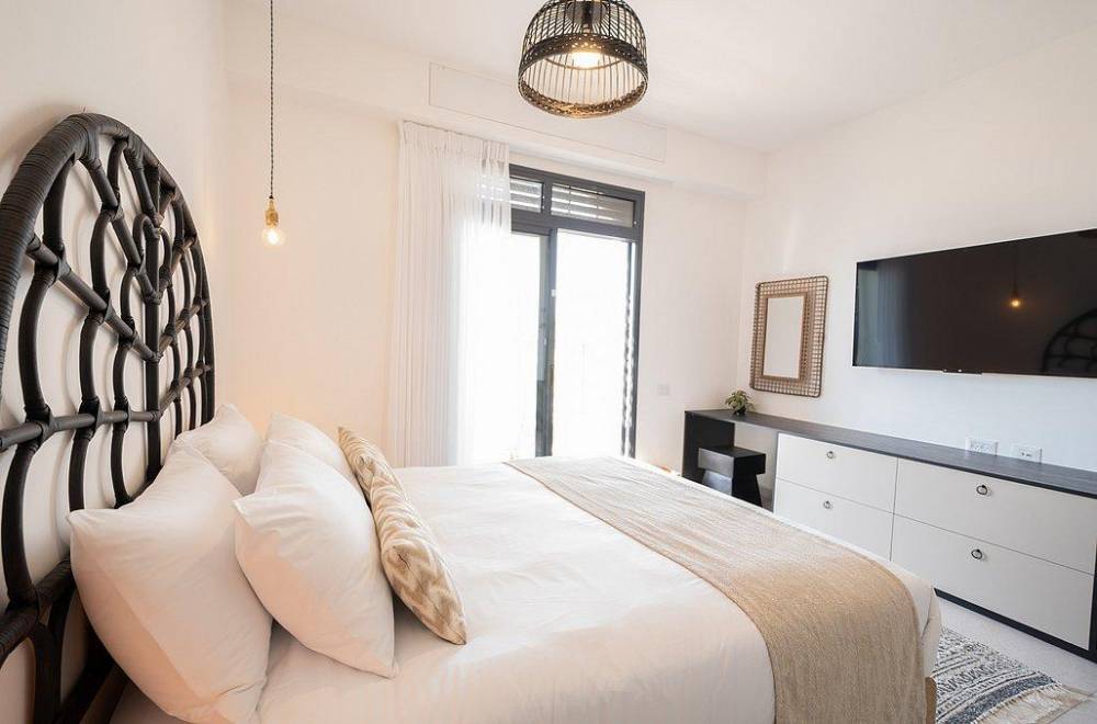 כל חדר שינה כולל מיטה זוגית, טלוויזיה, מיזוג אוויר, שידות וארונות אחסון.