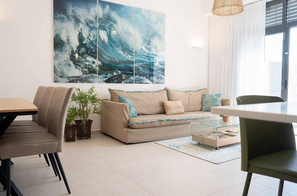 סלון מרווח עם מערכת ישיבה וטלוויזיה עם חיבור לערוצי הוט