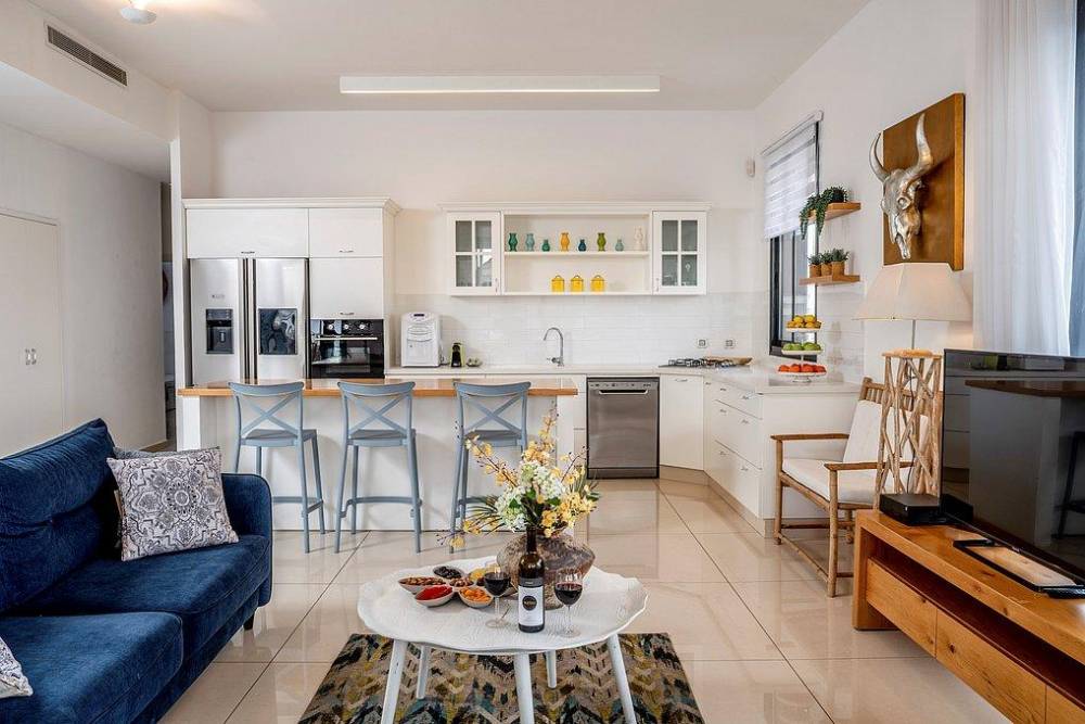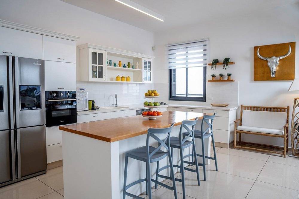 בבית 4 חדרי שינה מרווחים ומעוצבים, סלון משקיף לנוף, מטבח מאובזר קומפלט ופינת אוכל.