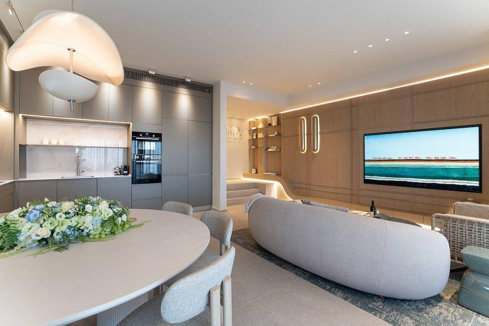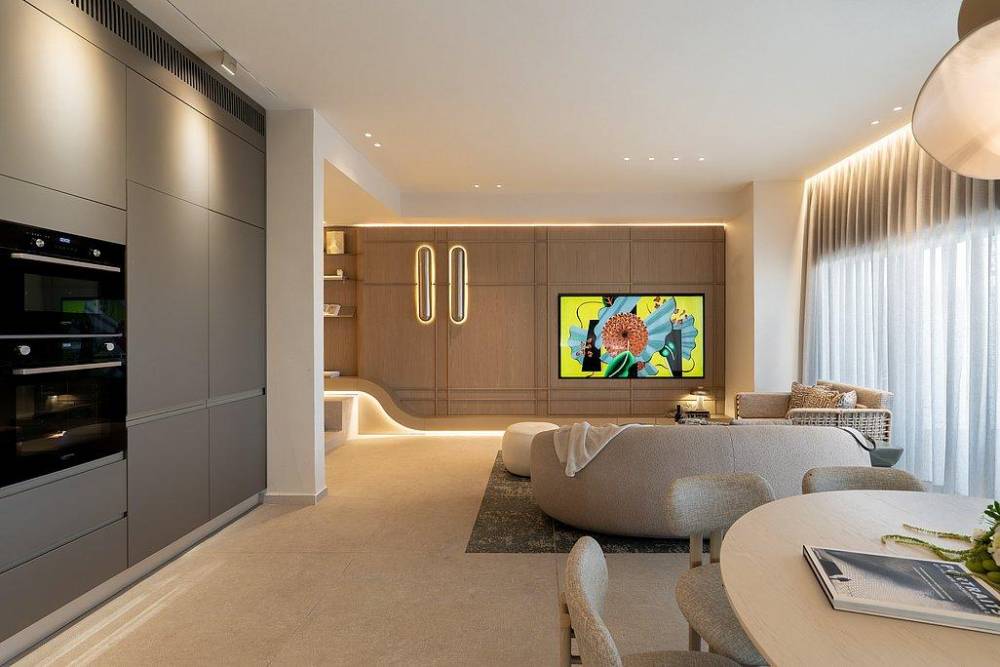 מטבח מאובזר קומפלט הכולל: מקרר, מקפיא, מיקרוגל, תנור אפייה, כלי אוכל והגשה, סירים ומחבתות, מדיח כלים, פינת קפה, מכונת אספרסו, בר מים.