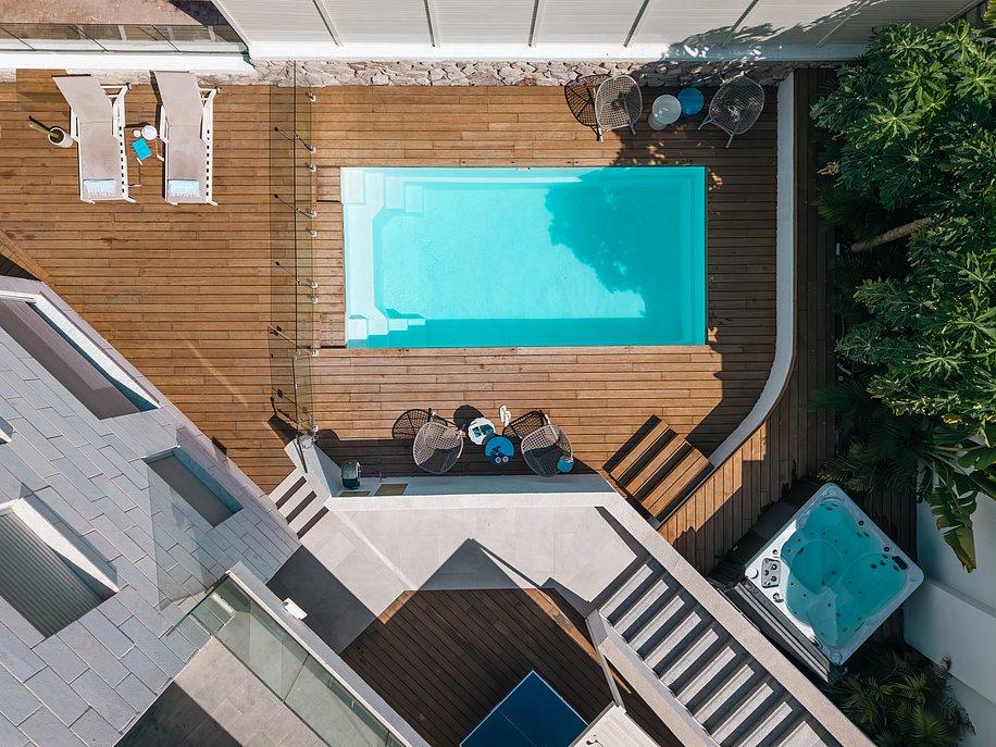 במתחם החיצוני תהנו מבריכת שחיה מחוממת ומגודרת, ג'קוזי ספא זרמים, מגוון פינות ישיבה ושיזוף, שולחנות משחק לשדרוג הנופש ועוד מגוון רחב של פינוקים!