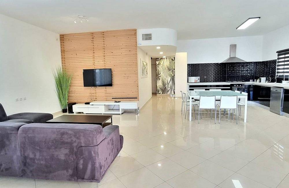 בחדרים- פלזמה, מזגן, שידות אחסון, ארון, מיטה זוגית. (ניתן להוסיף בחדרים מיטות ילדים /לול על פי צורכי הלקוח)