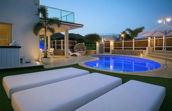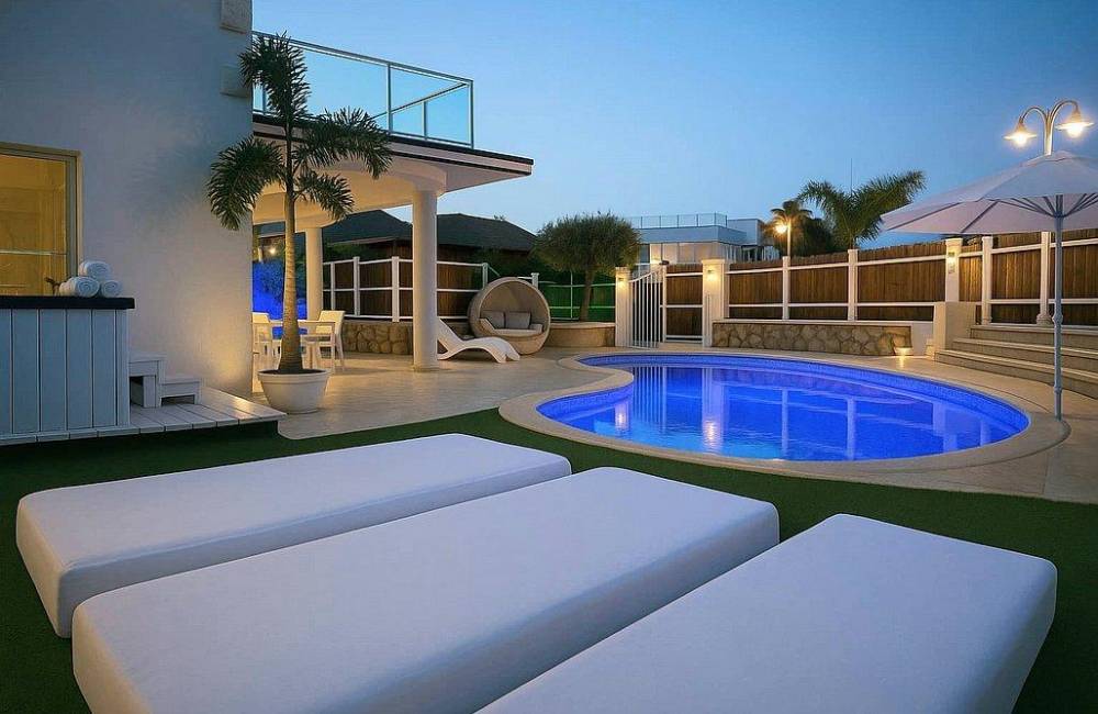 מיטות שיזוף שעוצבו במיוחד לקונספט של הווילה