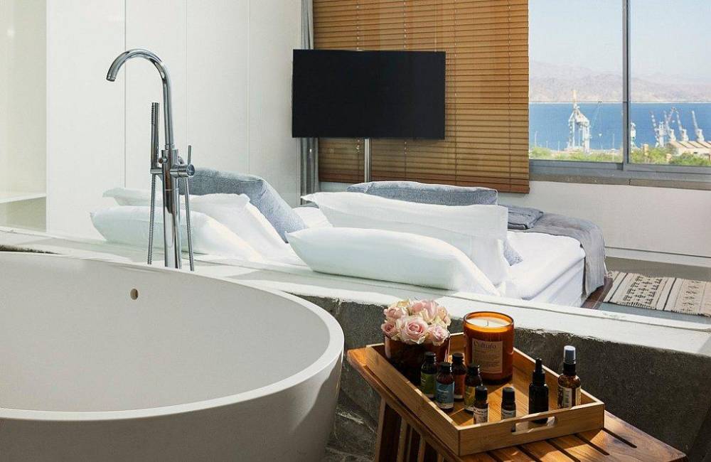 סוויטה - מיטה זוגית, שידות, מזגן, טלויזיה חכמה, חדר רחצה פרטי עם מוצרי טואלטיקה.