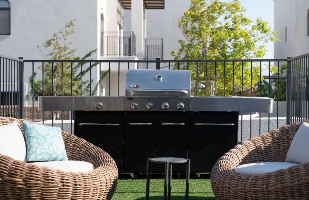פינת מנגל הכוללת מנגל חשמלי עם מטבחון חיצוני