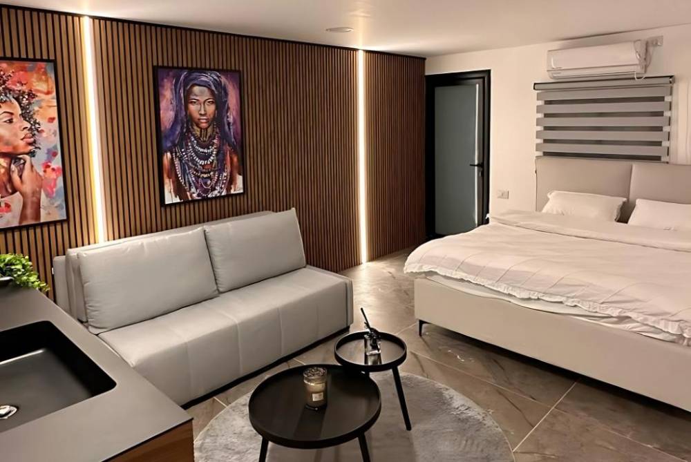 אבזור הסוויטות: מיטה זוגית, מטבחון, טלוויזיה חכמה הכוללת נטפליקס, מיזוג אוויר, מכונת כביסה, מקלחת ושירותים.