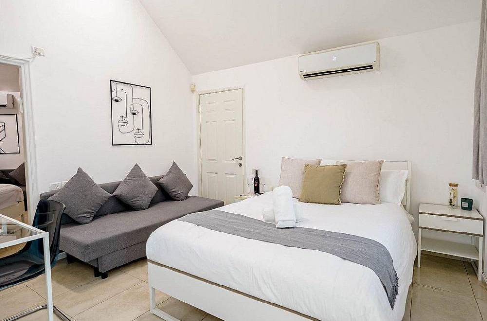 מיטה זוגית מוצעת, מזגן, טלוויזיה, שידות, חדר רחצה פרטי, מרפסת