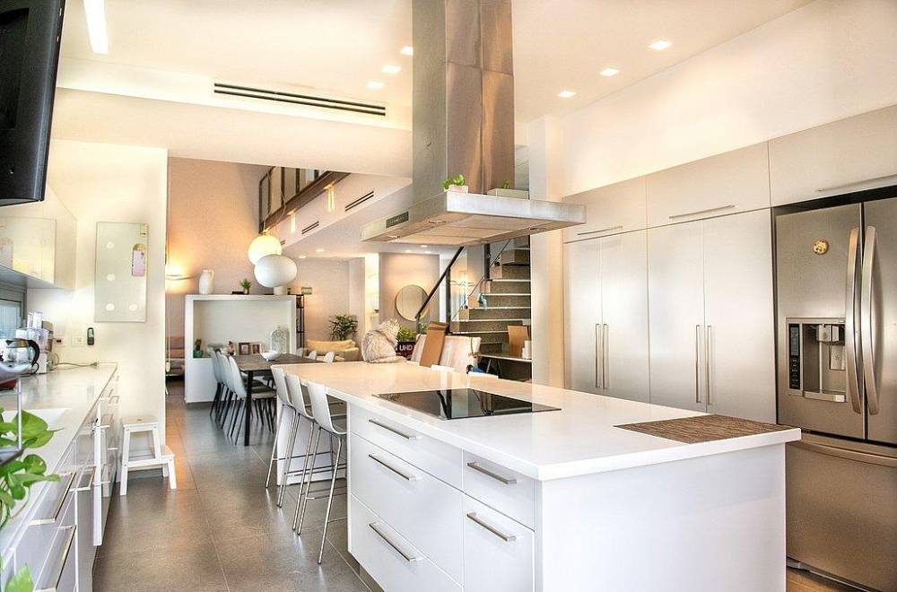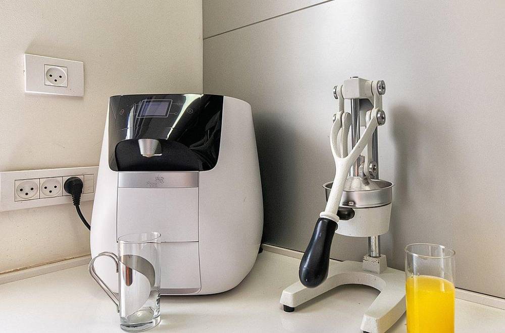 מטבח הוילה כולל: מקרר, מיקרוגל, כיריים חשמליות, כלי אוכל והגשה, מכונת קפה, מתקן מים, מדיח כלים ותנור אפייה