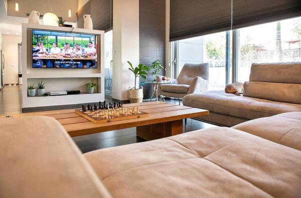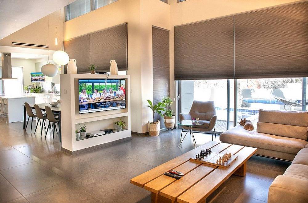 סלון יוקרתי ומעוצב עם מסך LCD וחיבור ל-HOT