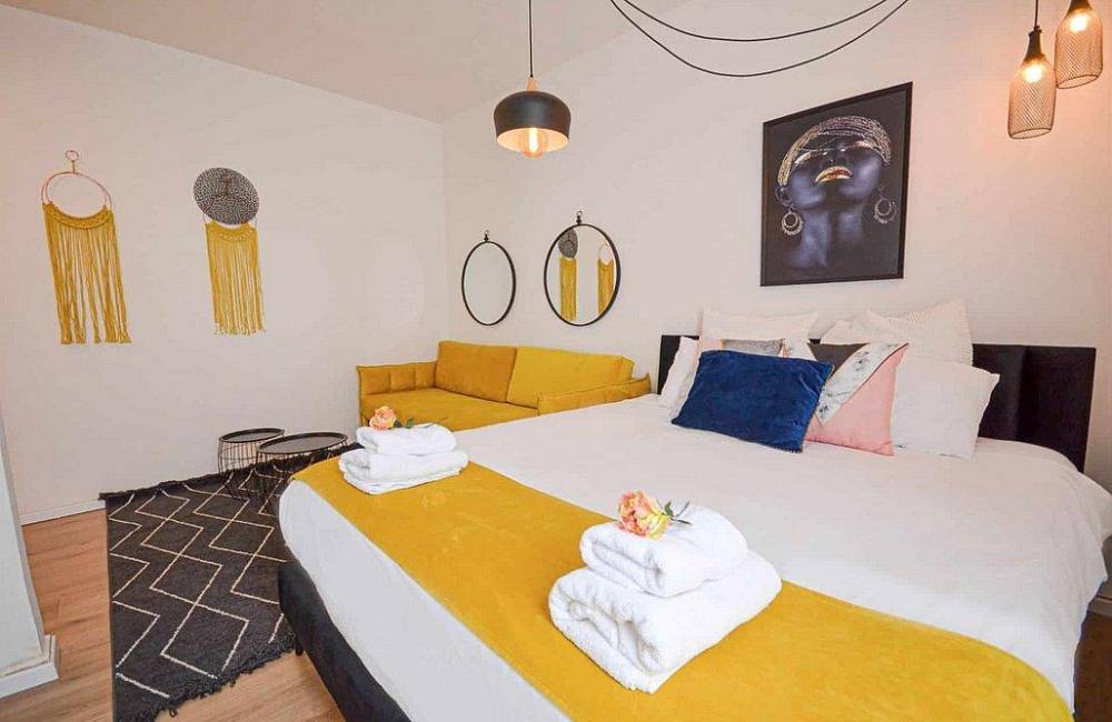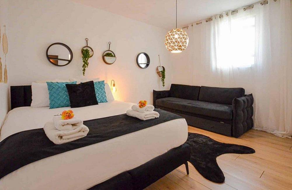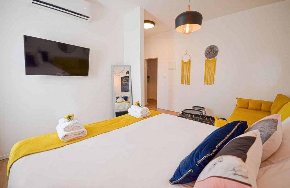 חדר שינה 5: מיטה זוגית, ספה נפתחת , מיזוג אוויר, שידה וטלוויזיה