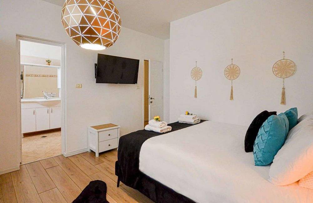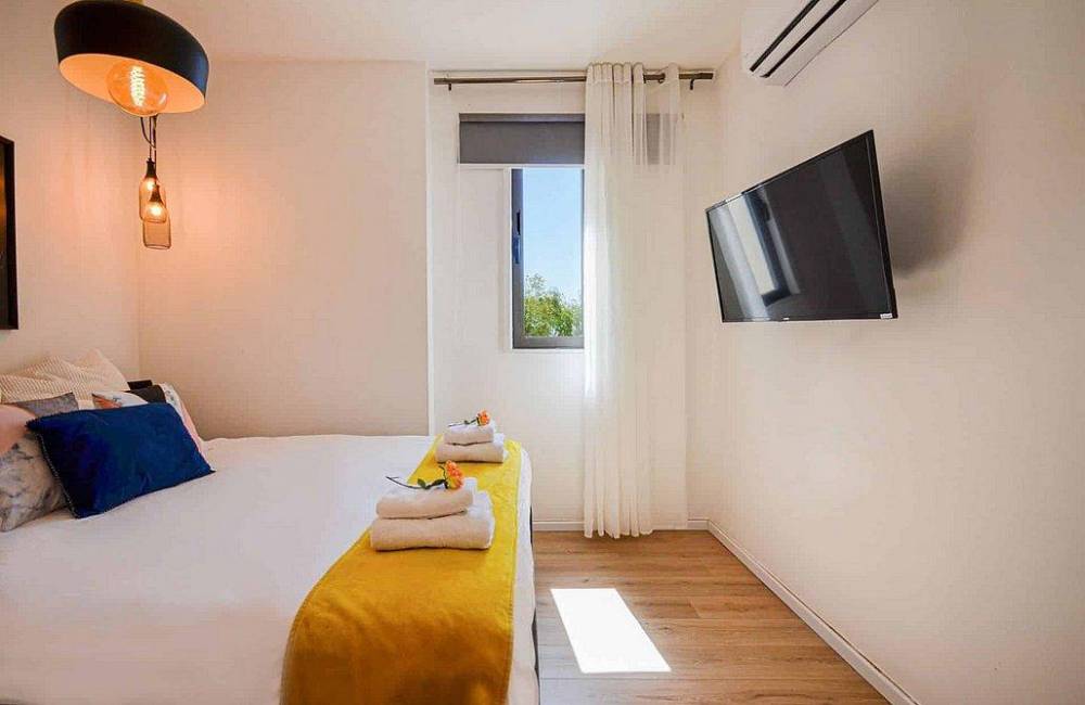 חדר שינה 1: מיטה זוגית, מסך צפייה, שידה, מזגן