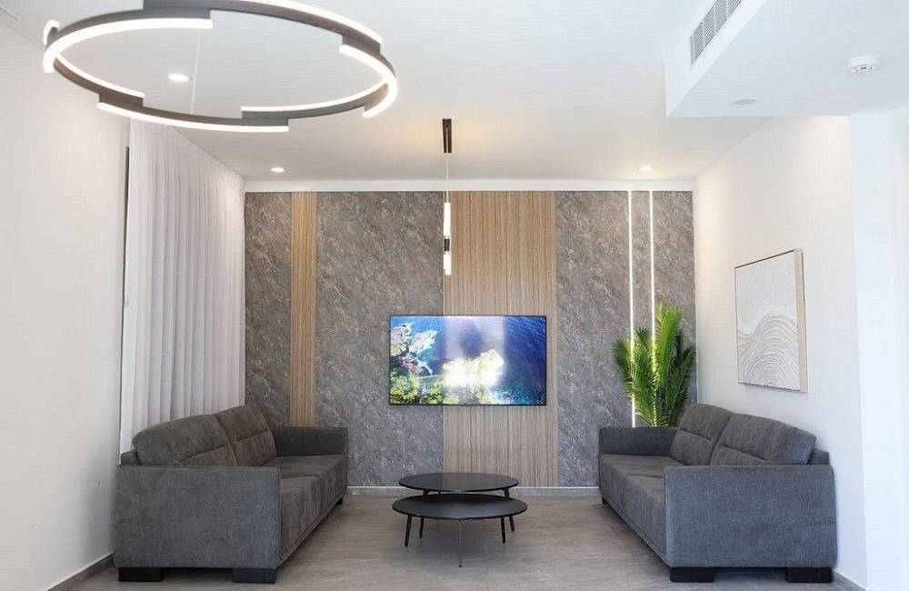 סלון + מסך LCD בגודל 72 אינץ עם חיבור ל-YES