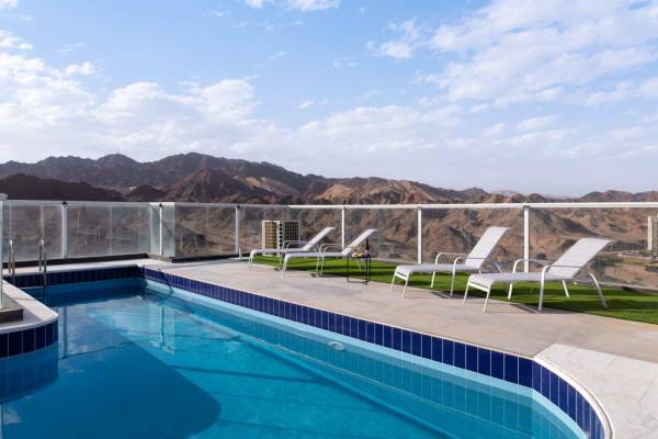 בריכת שחייה מחוממת על גג הפנטהאוז צופה לנוף