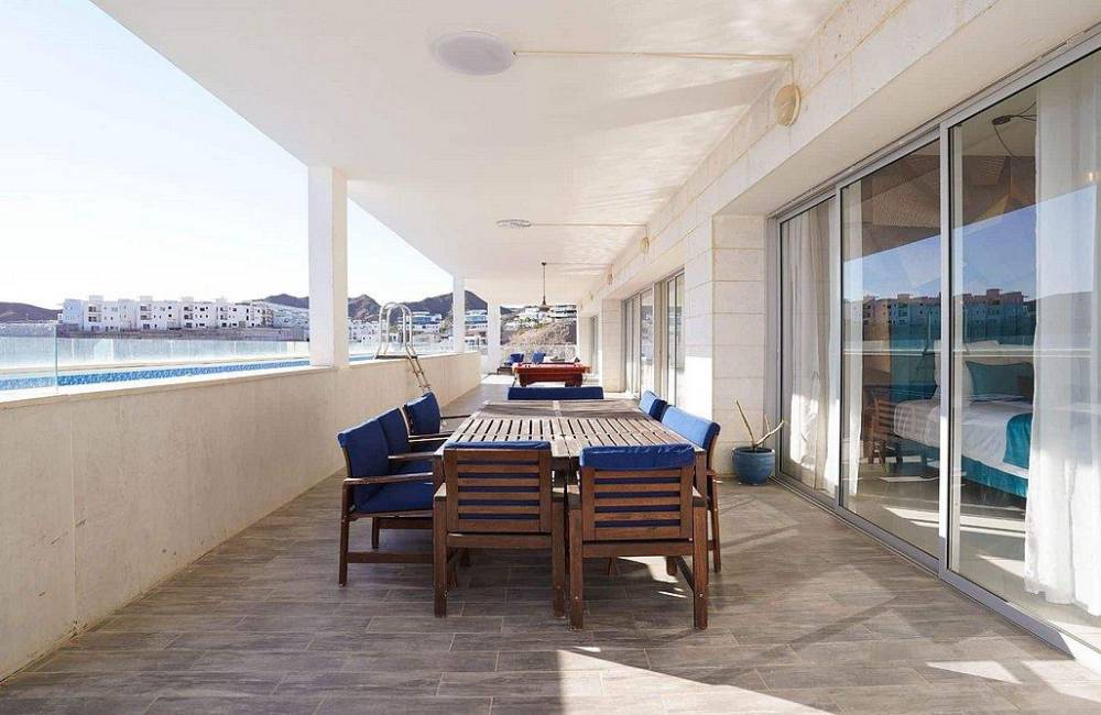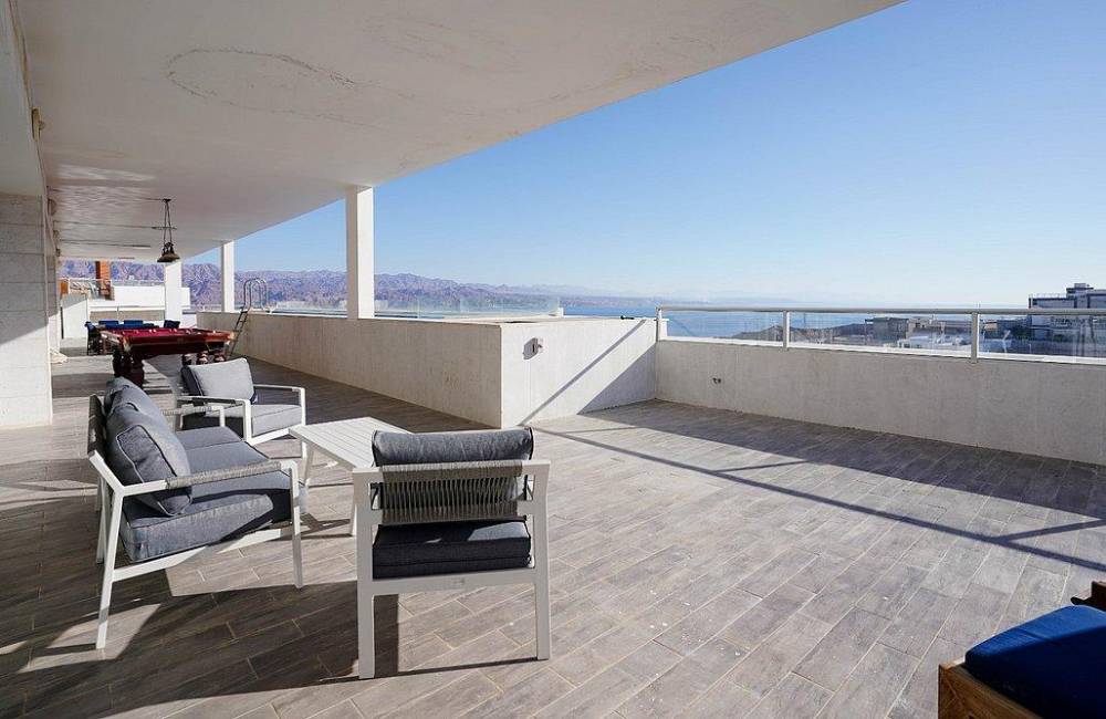 מול נוף השמים וחופי הים אנו גאים להציג בפינכם את הפנטהאוז המדהים שלנו מבית Yalarent באילת "פנטהאוז נוף שמיים" פנטהאוז מעוצב ויוקרתי בו תוכלו ליהנות מ-7 חדרי שינה מפנקים בעיצוב מרשים, סלון ומטבח מאובזר, אי לצד המטבח ופינת אוכל. בנוסף קיימת יצאת למרפסת נוף משגעת הכוללת בריכת שחייה גדולה מחוממת בחודשי החורף, פינת BBQ, שולחן סנוקר, ריהוט גן ונוף מדהים אל חופי הים. אם אתם מייחלים לחופשה שיש בה גם פינוק וגם נוף מדהים, מהרו עוד היום לחייג אלינו ולשריין מקום.