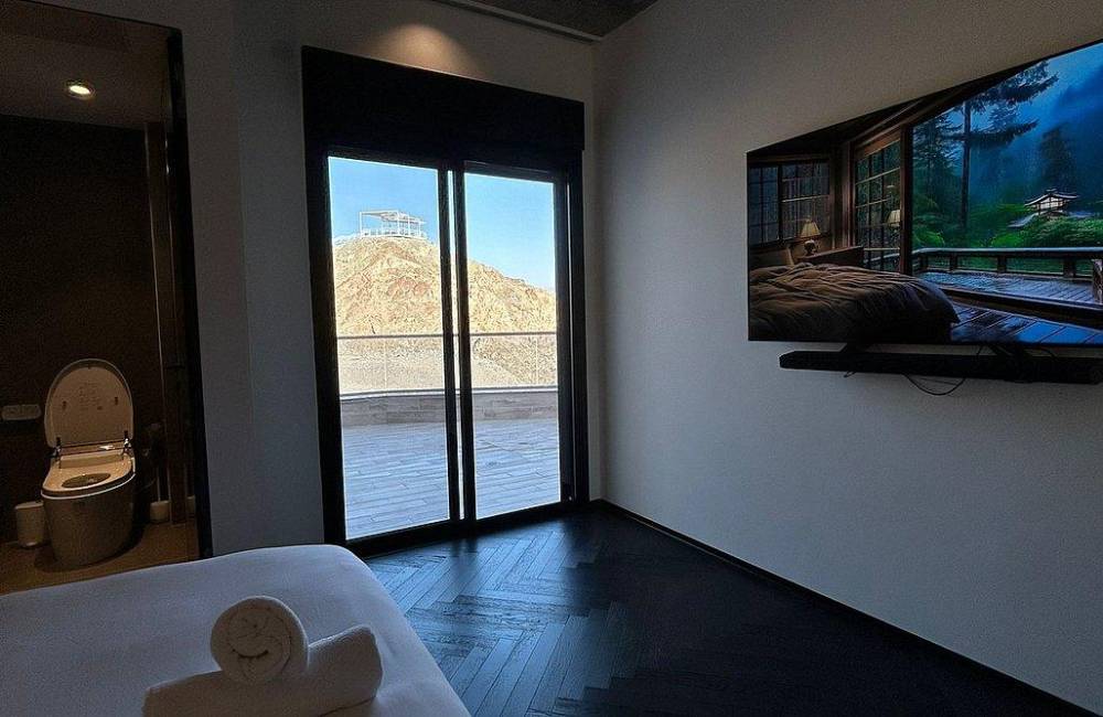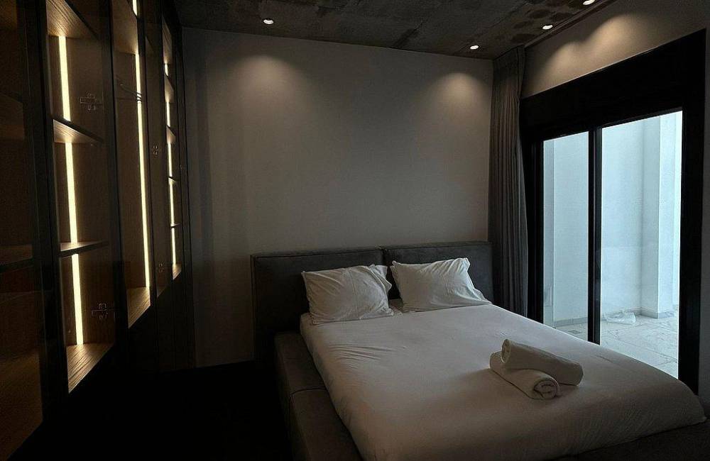 מיטה זוגית אורטופדית, מיזוג אוויר, שידות וארונות יוקרה, טלוויזיה חכמה 65 אינץ', חדר רחצה פרטי עם מקלחת ושירותים