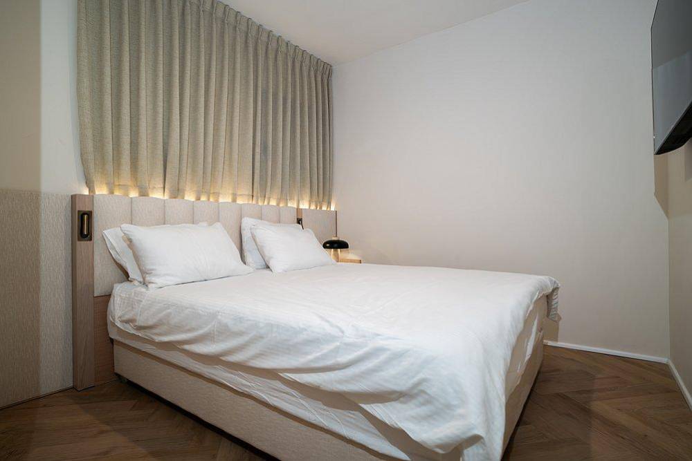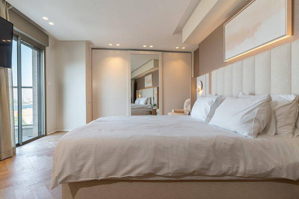 מיטות זוגיות, טלוויזיות שטוחות, ממירים וארונות, כל החדרי השינה מעוצבים בקפידה לרגיעה אולטימטיבית