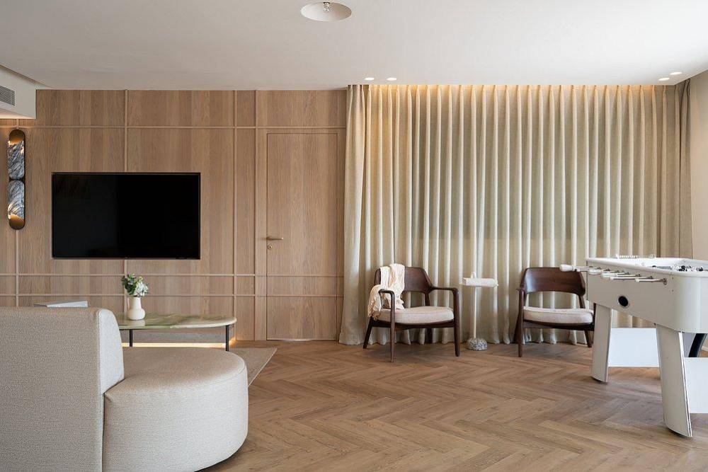 פינת ישיבה מרווחת הכוללת טלוויזיה
