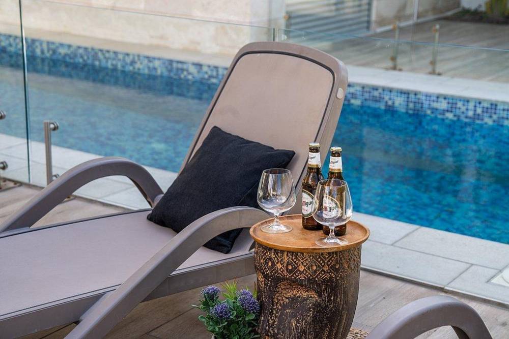 לכל וילה מתחם חיצוני מבודד ופרטי לגמרי עם בריכת שחייה מחוממת עם גדר לבטיחות, סאונה יבשה מפנקת, ג'קוזי ספא ועוד..