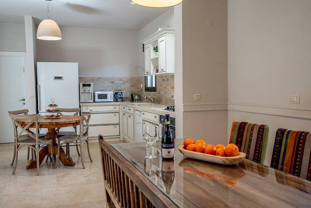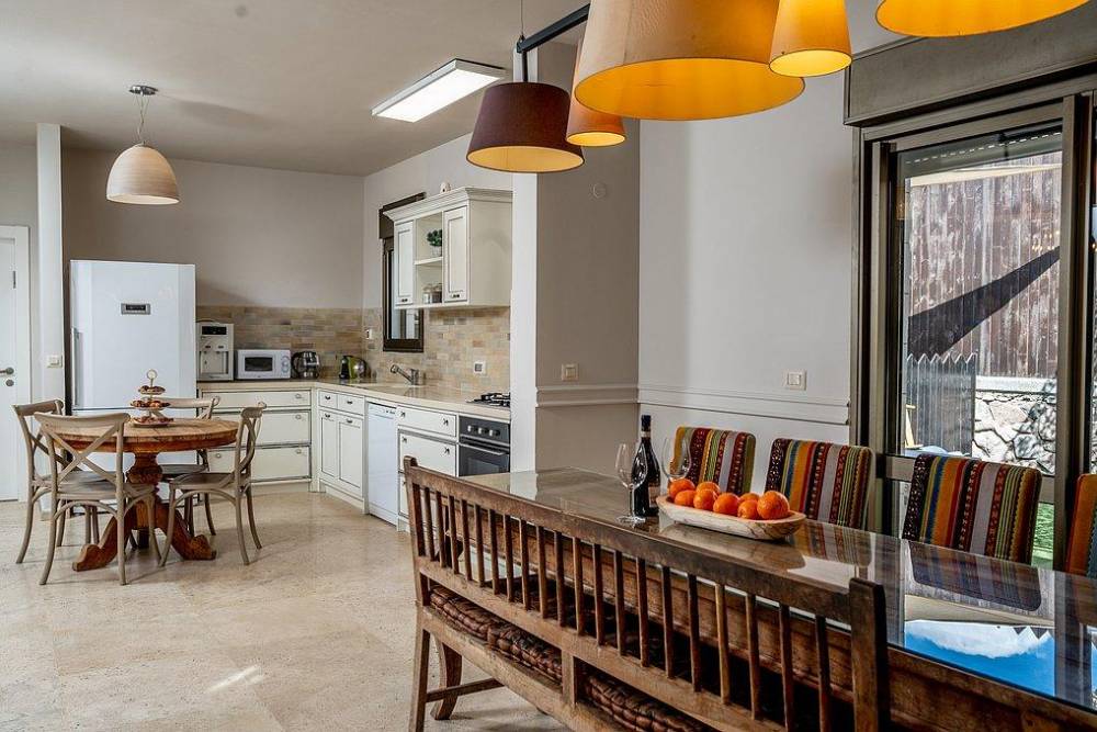 פנים הוילות מאובזר במערכות ישיבה מרווחת, פינות אוכל מעוצבת ומטבח מאובזר.
