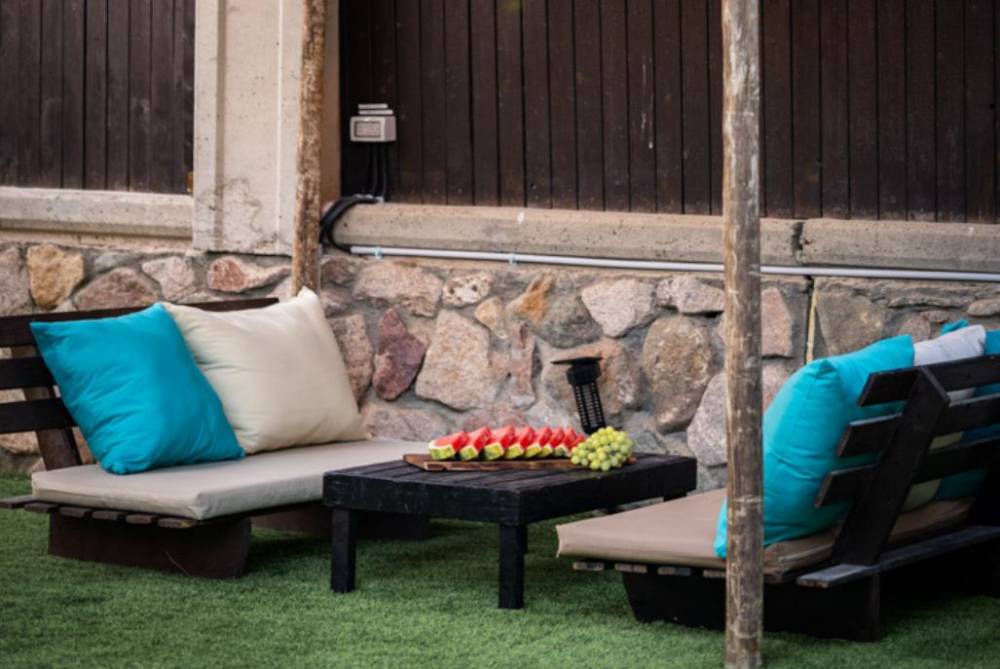 • מדשאה סינטטית עם פינות ישיבה מוצלות + תאורה לילית