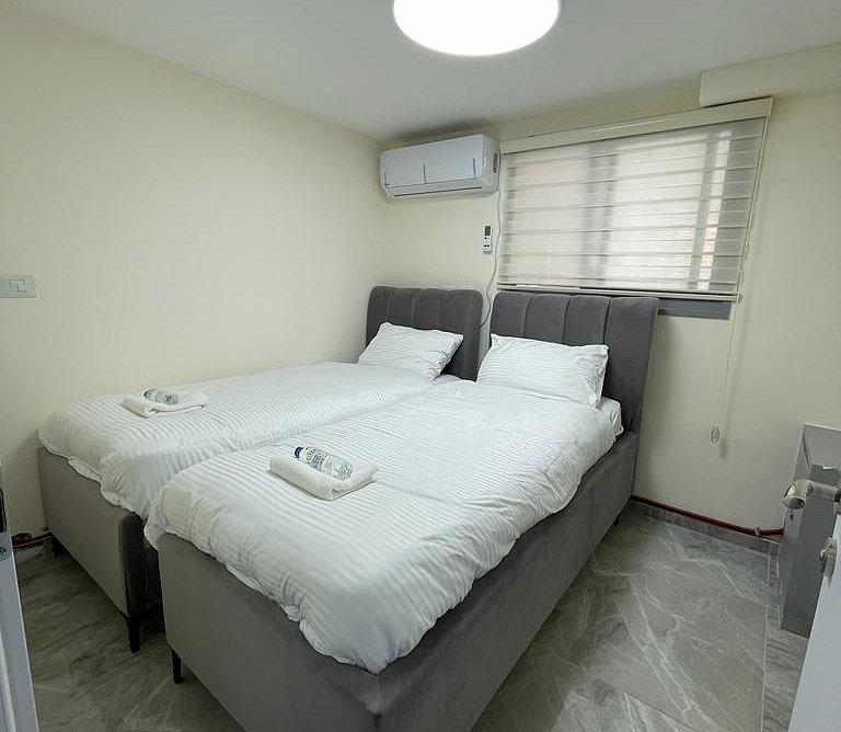 אבזור החדרים: מיטה זוגית, שידה, מזגן