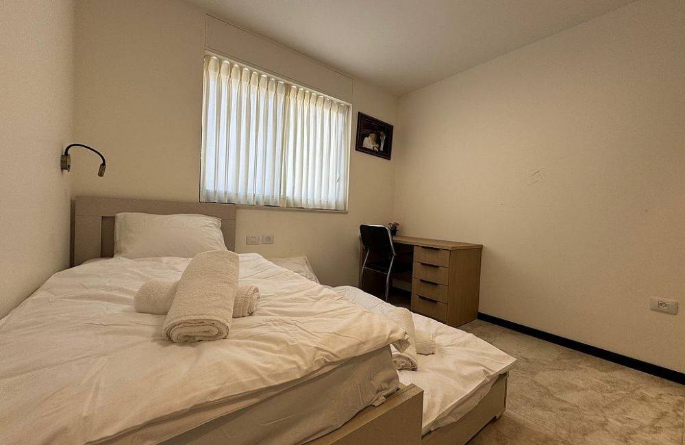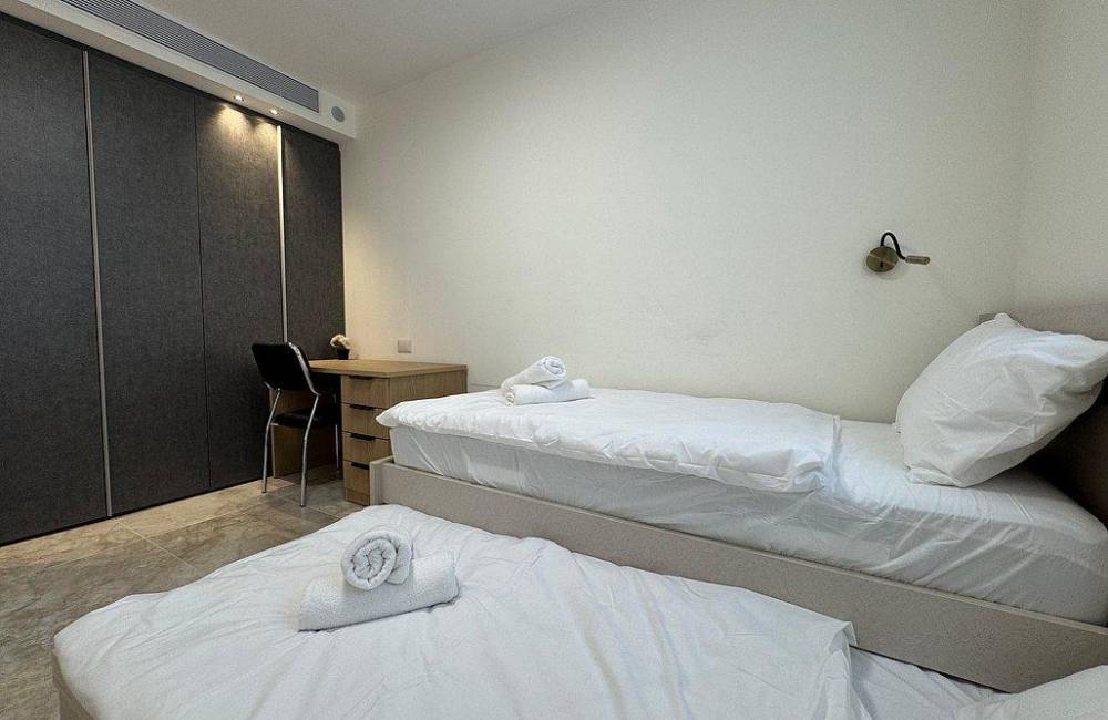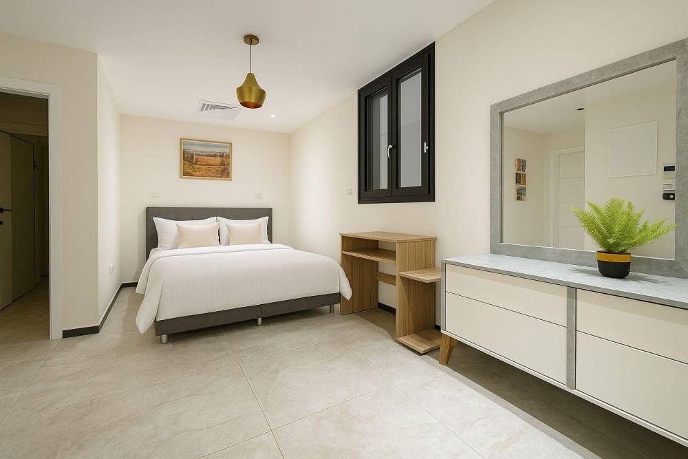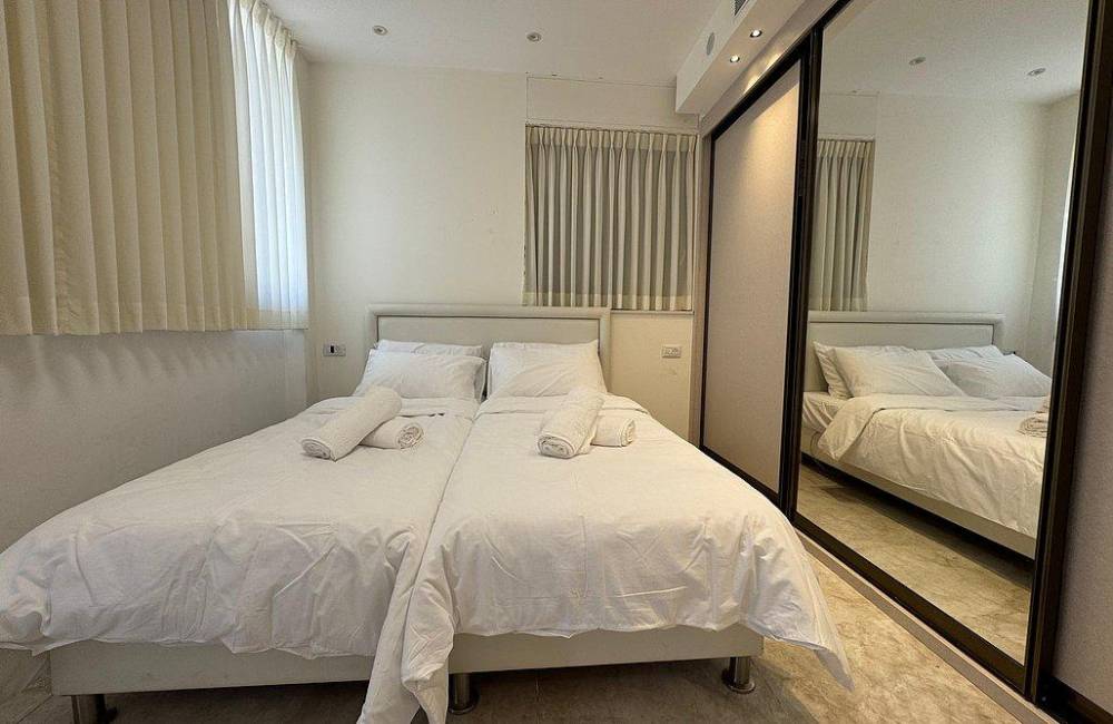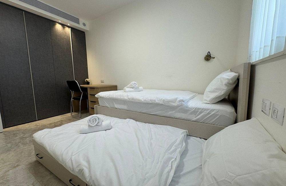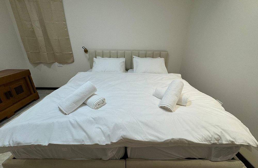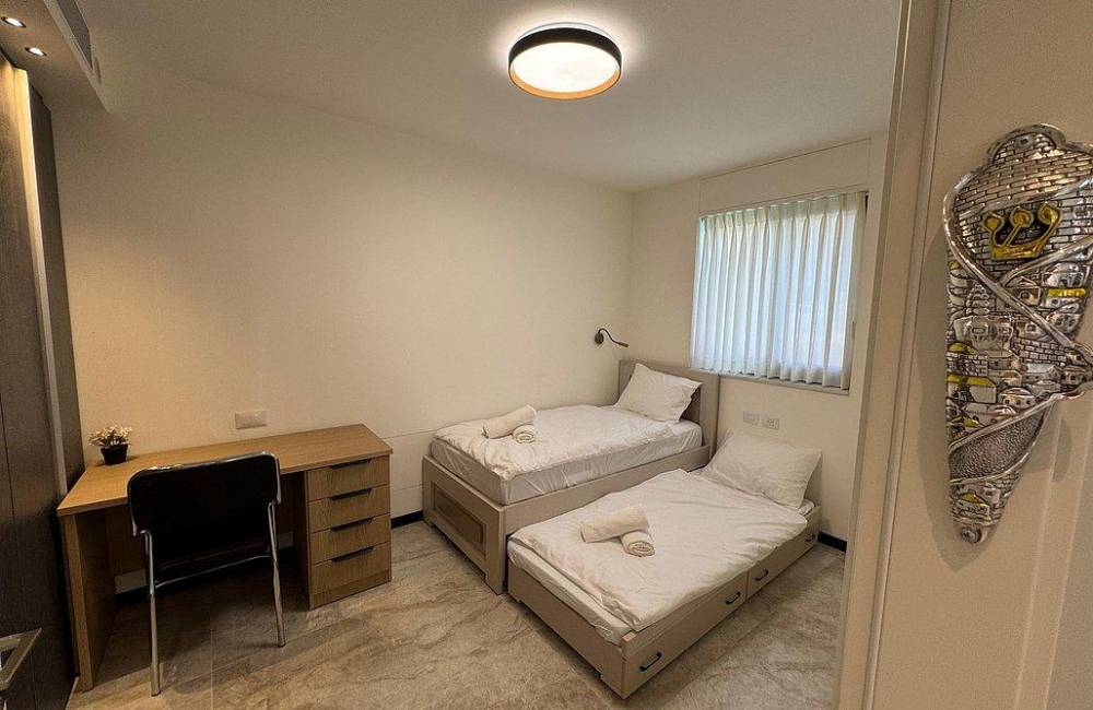 קומה רביעית: 2 חדרי שינה, כל חדר שינה עם מיטה יהודית, מיזוג אוויר, שידות וארונות לאחסון, שירותים ומקלחת משותפים