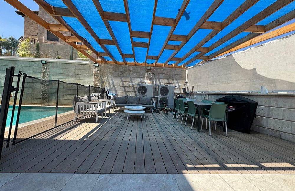 חצר מרווחת עם פינות ישיבה, פינות הצללה ומרפסת נוף