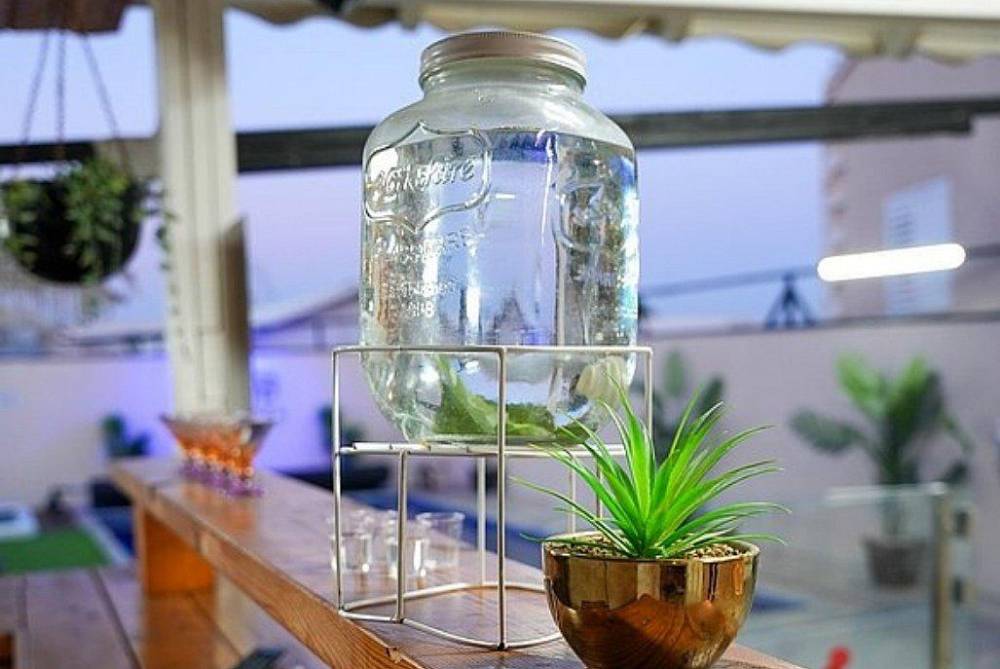 בר עץ על שפת הבריכה הכולל מערכת שמע של ביטי ספיקר