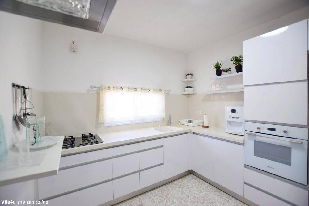 מטבח מאובזר: 2 כיריים גז, מקרר, מכונת קפה של חברת נספרסו, תנור, מתקן מים (מותאם לשבת), מיקרוגל, כלי אוכל והגשה