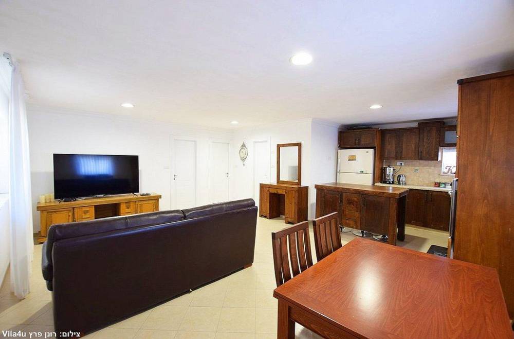 2 חדרי שינה עם מיטה זוגית, מיזוג אוויר, פינת ישיבה ומטבחון הכולל קומקום, פלטה ומיחם.