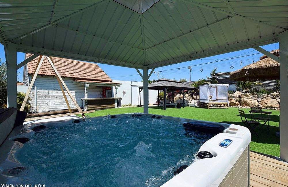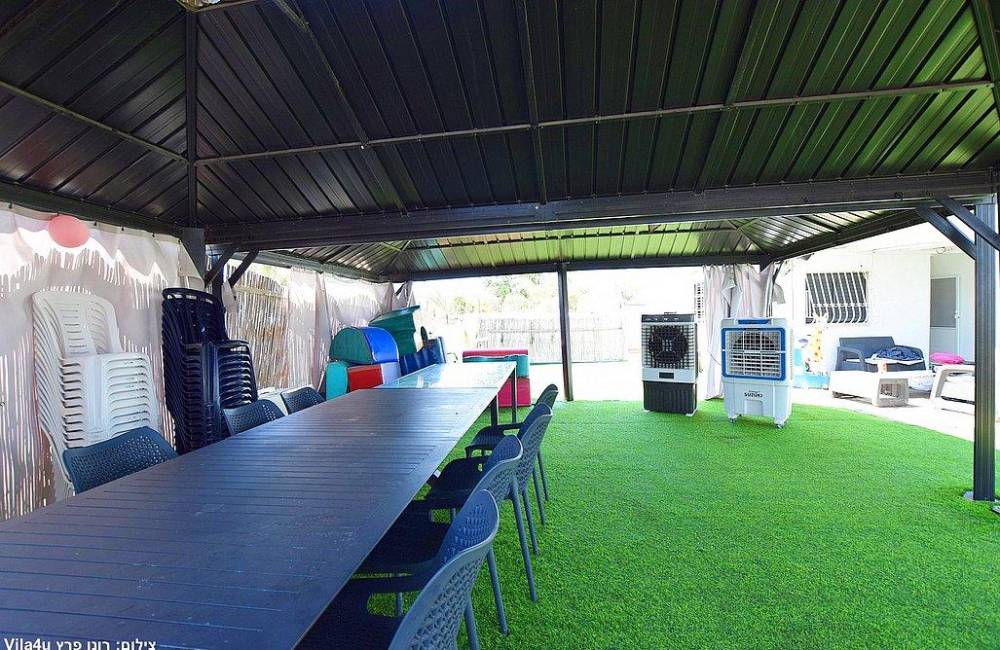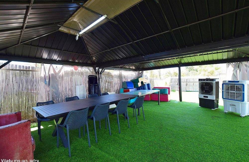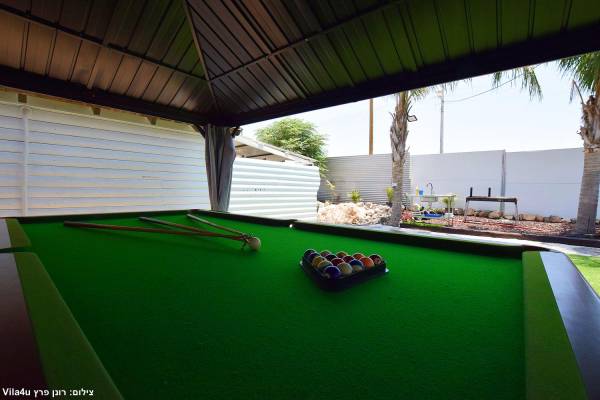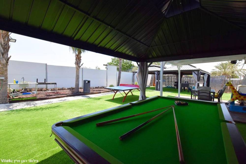 חצר עם בריכת שחייה מחוממת שאפשר להינות ממנה גם כשבחוץ 0 מעלות , ג'ימבורי, משחקי שולחן, בר אקטיבי, מערכת סיראונד, עמדת מנגל ופינות ישיבה