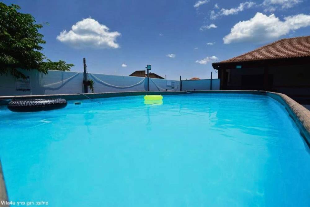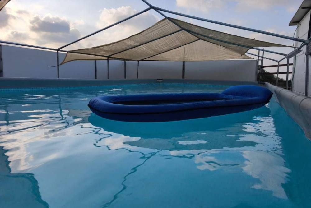 בריכת שחייה ענקית בגודל 8X4 מטר, עומק 1.30, מחוממת ומקורה בעונת החורף