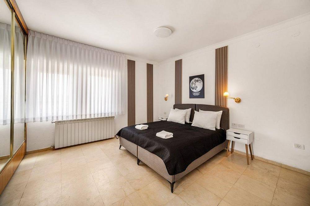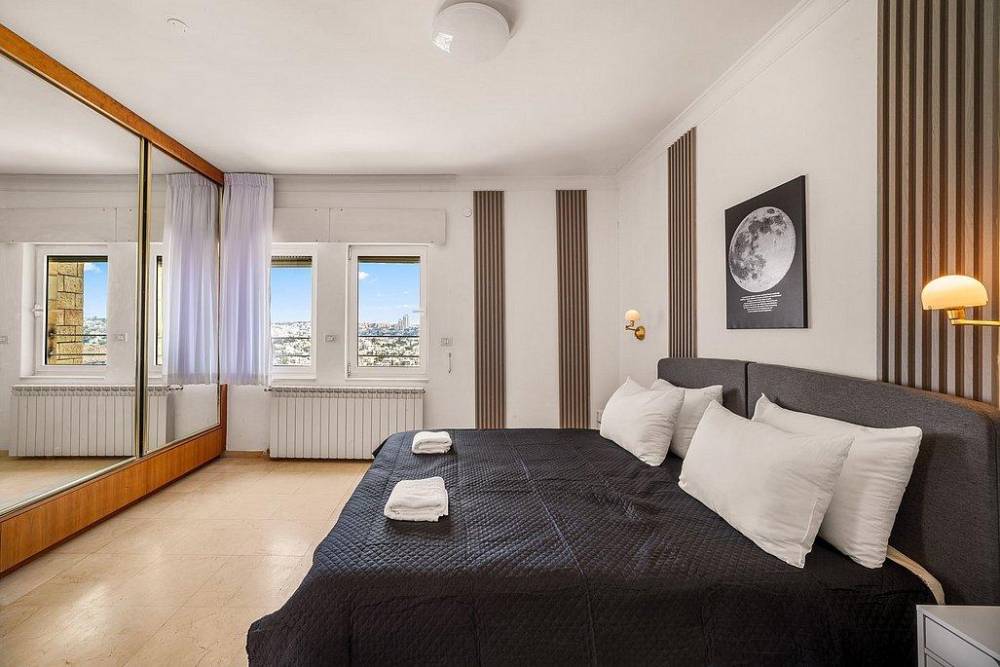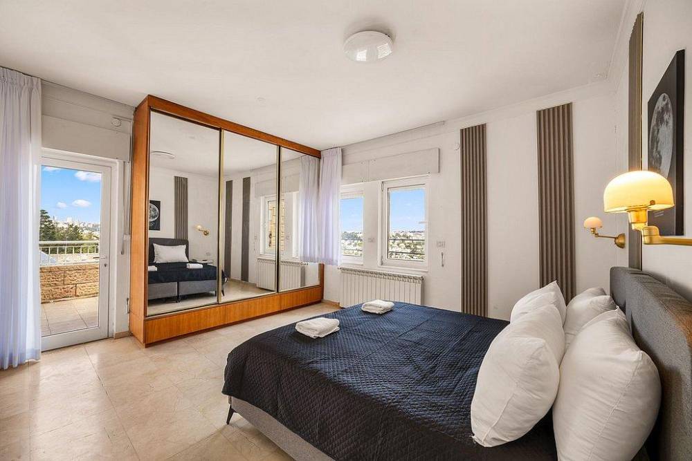 וילה ירושלים VIP כוללת 4 חדרי שינה מפוארים, כולל סוויטת הורים עם ג'קוזי ומרפסת פרטית לנוף עוצר נשימה.