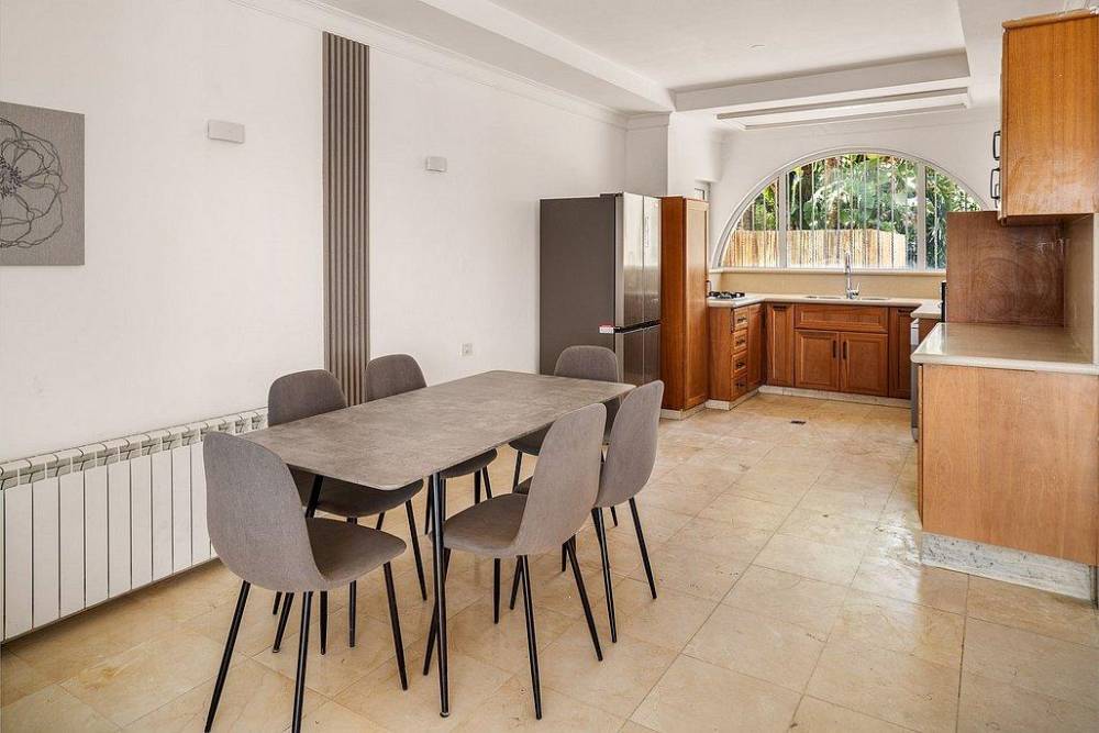 מטבח מאובזר, סלון מפנק עם מערכת ישיבה רחבה וטלוויזיה, פינת אוכל משפחתית גדולה ומיזוג בכל הווילה.