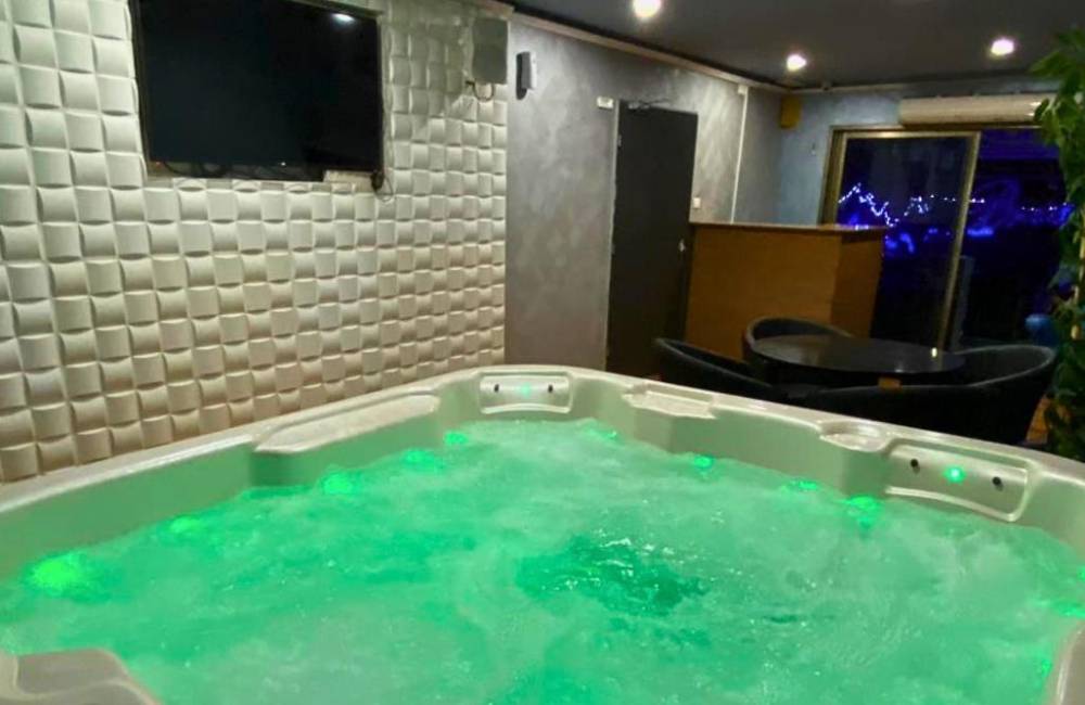 לובי כניסה עם ג'קוזי ספא לוהט עם תאורה מרהיבה