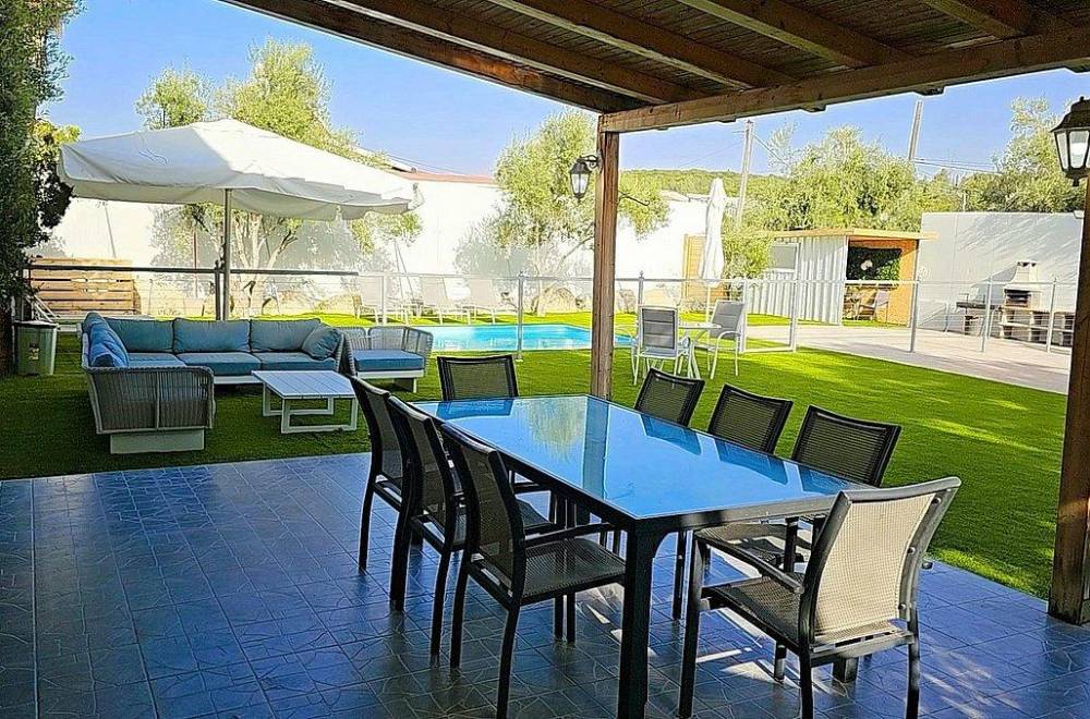 פרגולה עם פינת אוכל.