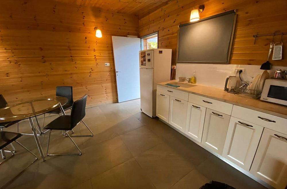 מטבח מאובזר הכולל מקרר, תנור אפייה, מיקרוגל, כיריים גז, מתקן מים, כלי אוכל והגשה. לציבור הדתי קיים פלטה ומיחם לשבת.