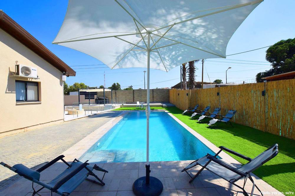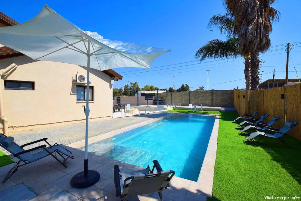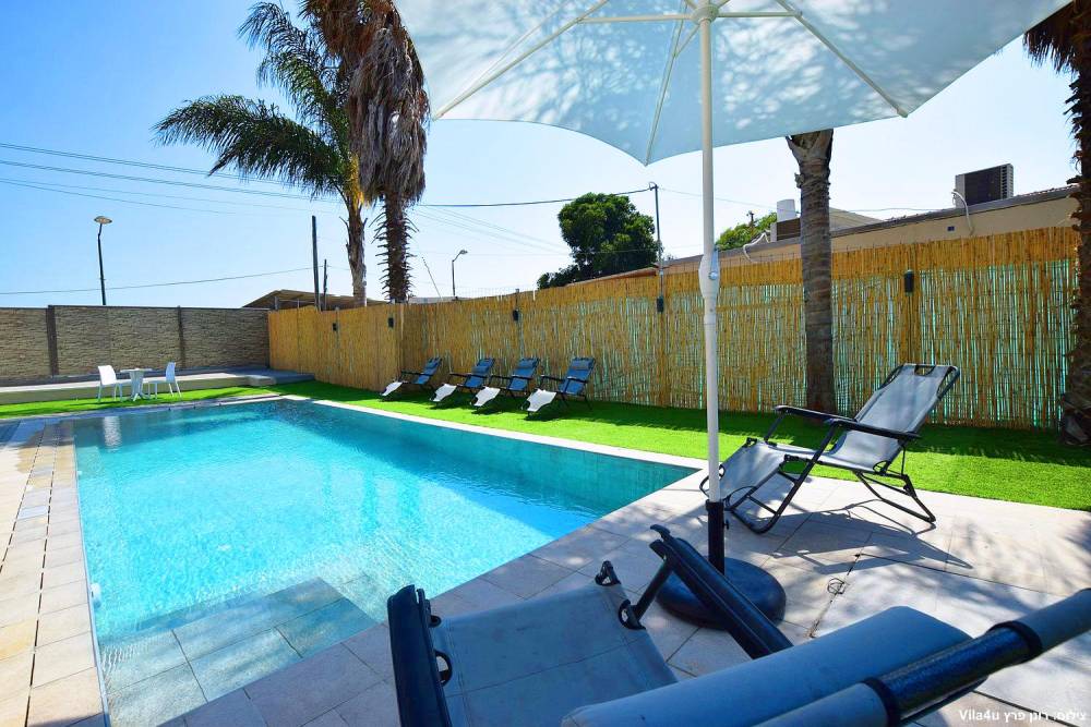הבריכה מגודרת הרמטית. (לידיעת הנופשים קיים מקלט צמוד לוילה)