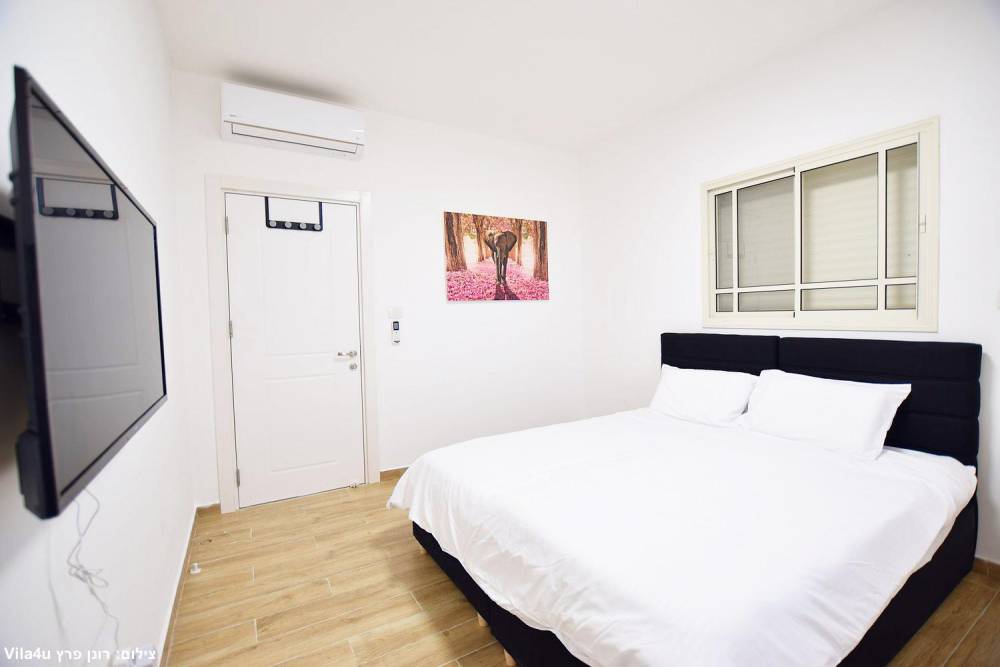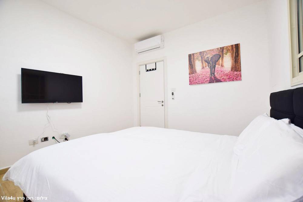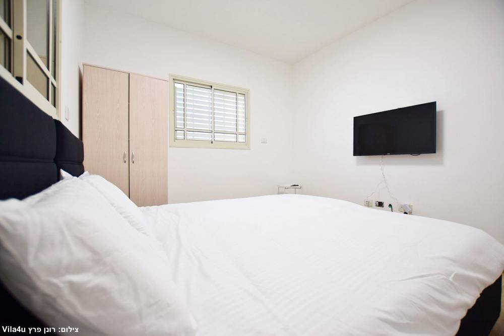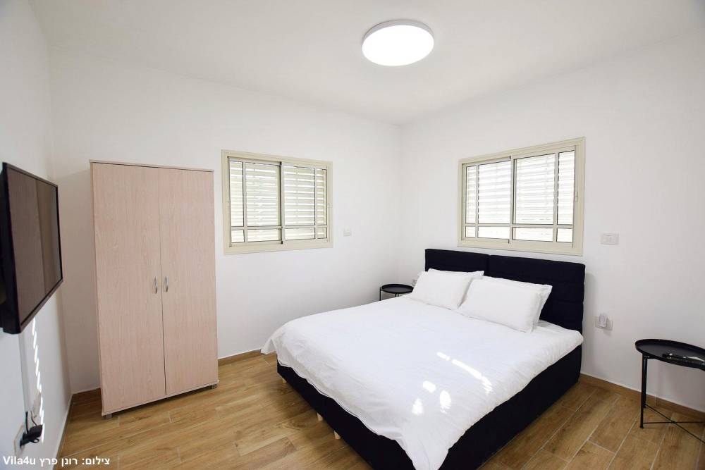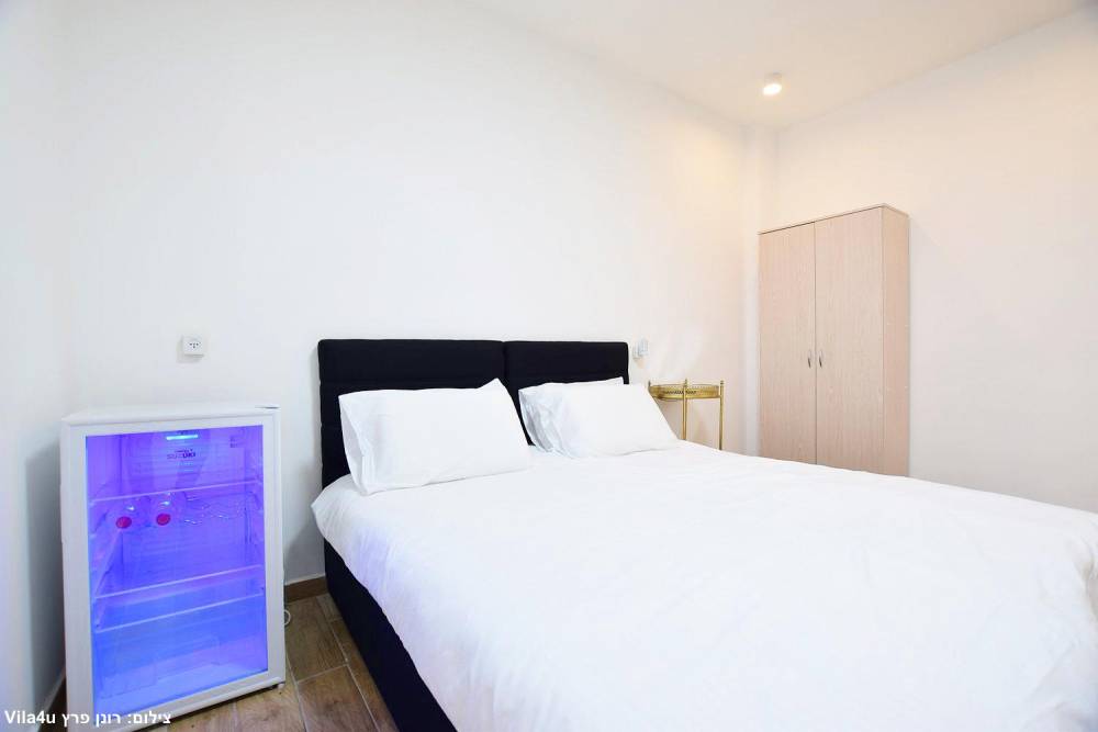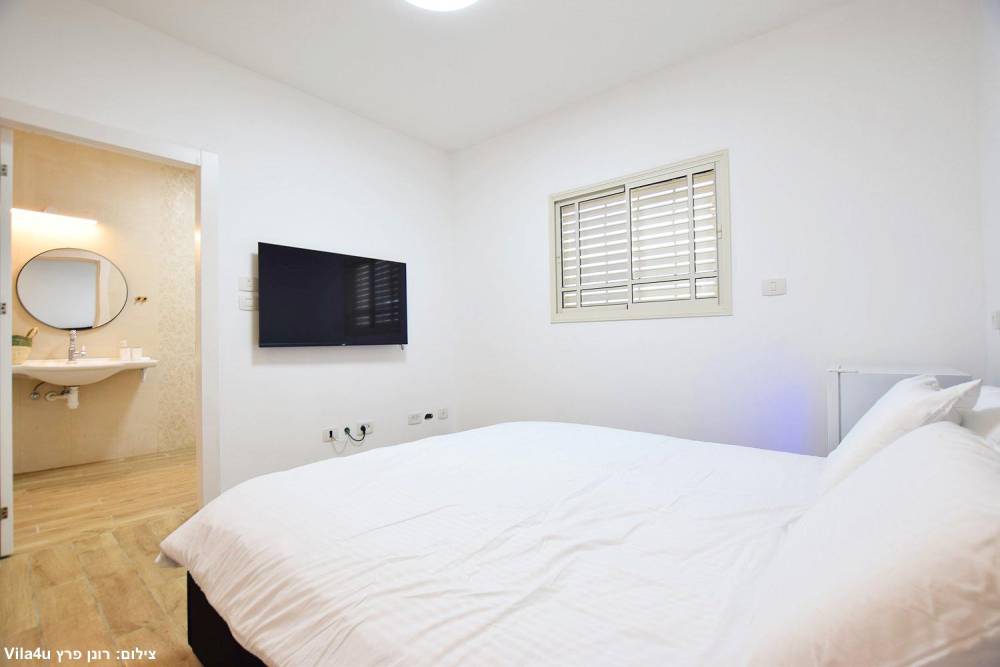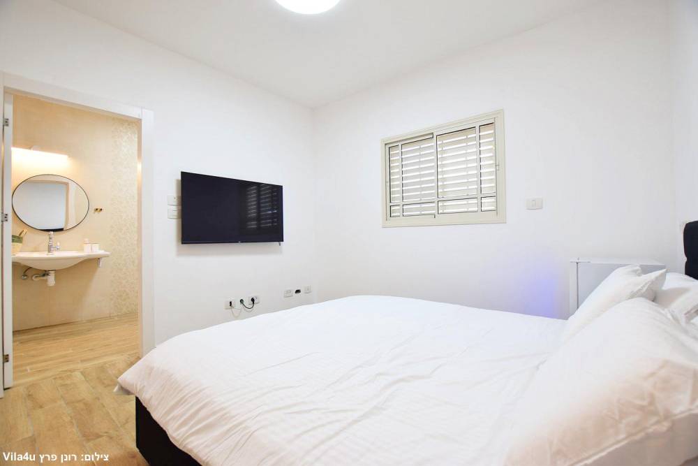 חדר שינה 1 - מיטה יהודית, ארון לאחסון, שידה, מסך טלוויזיה בחיבור ל-YES, מקרר מיני, מתלה בגדים, חדר רחצה פרטי.