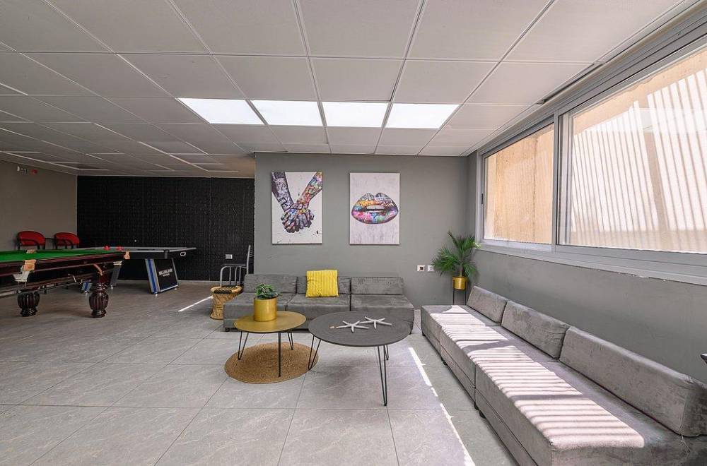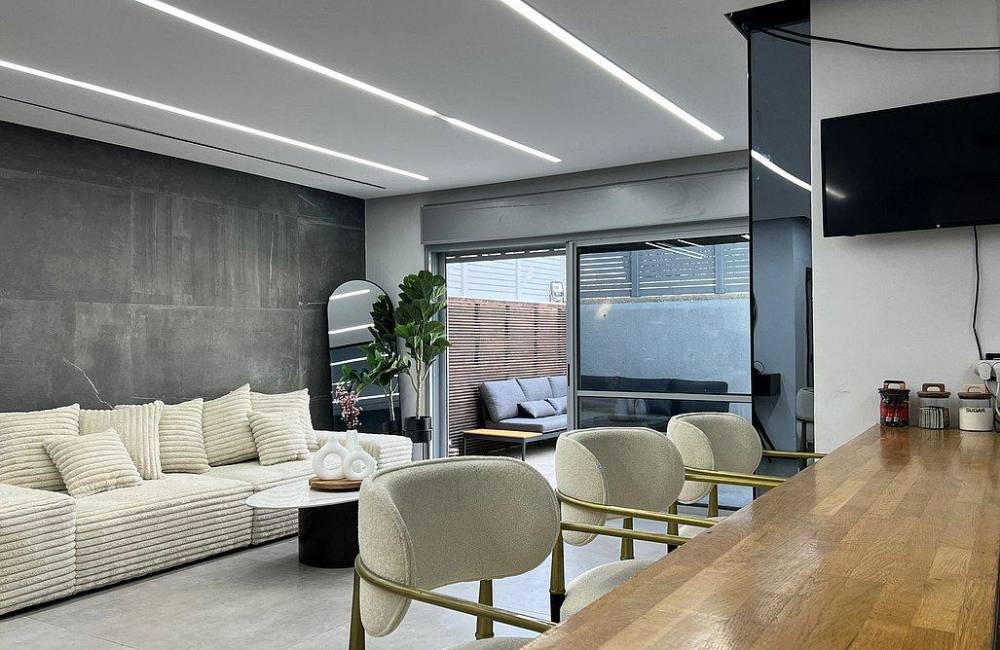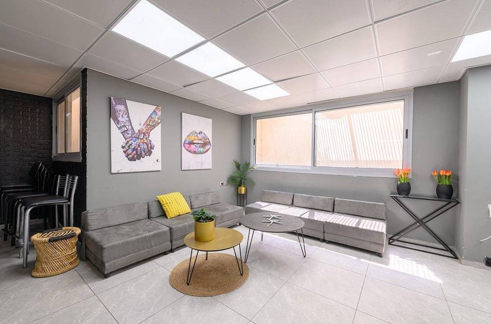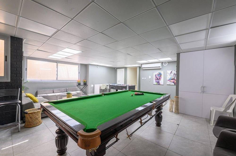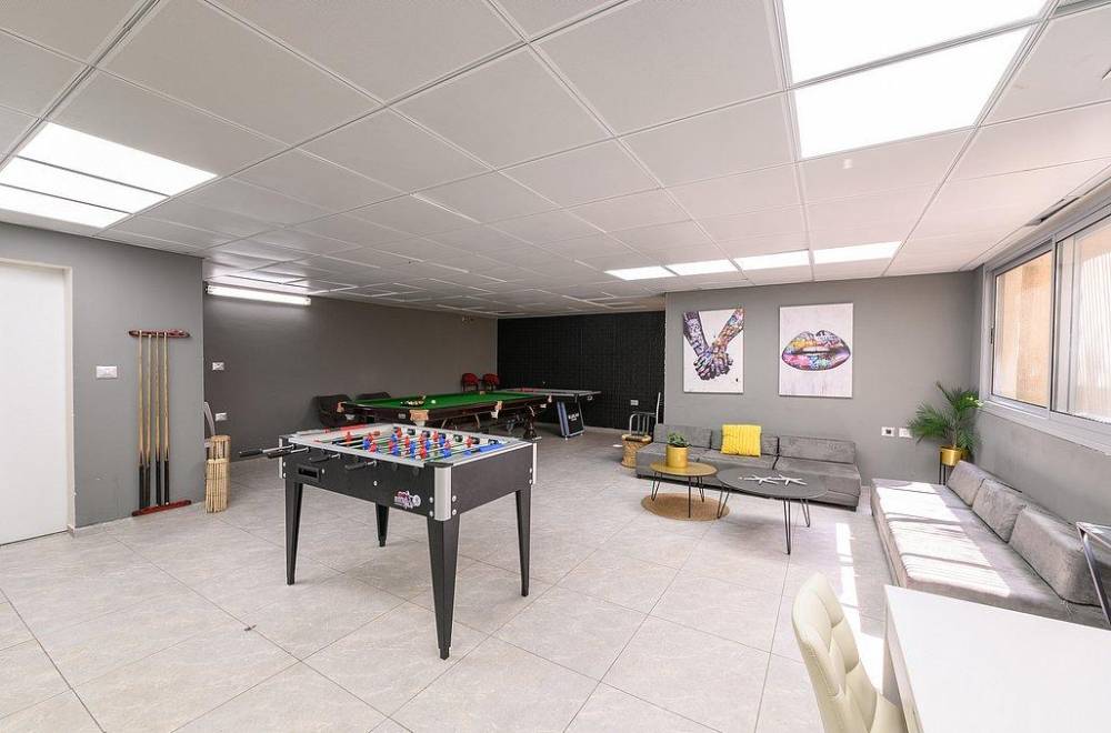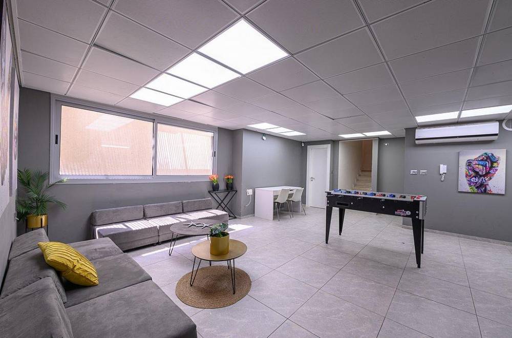 סלון רחב ידיים ובו מסך בגודל 80 אינץ עם חיבור לHOT