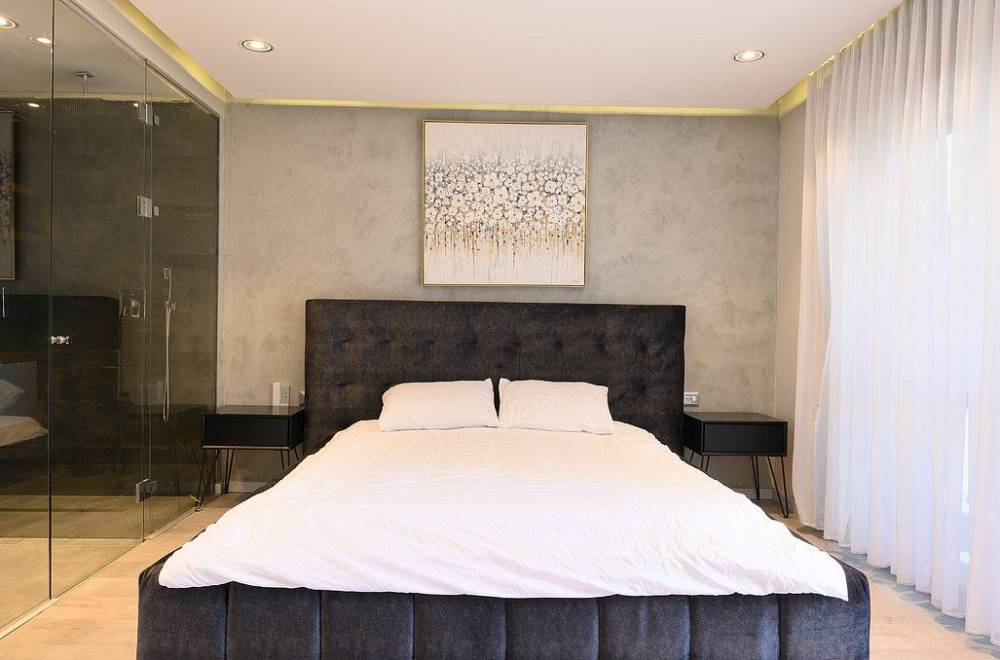 סוויטת הורים > מיטה זוגית, טלוויזיה 50 אינץ עם חיבור לHOT, חדר רחצה פרטי, חדר ארונות, יציאה למרפסת בגודל 8 מ"ר