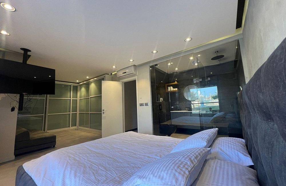 6 חדרי שינה, 2 חדרי רחצה ו4 חדרי שירותים.