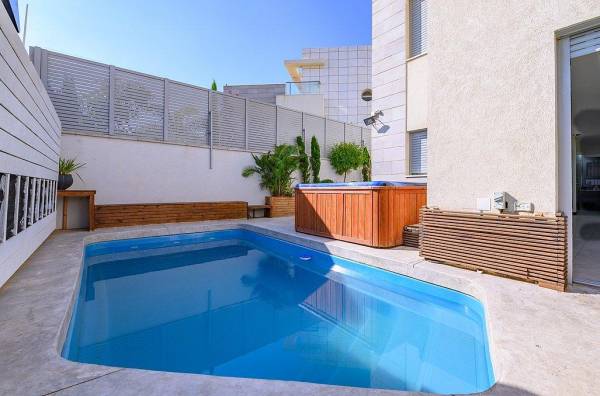 פינות שיזוף מתחם חיצוני קסום עם בריכת שחייה (מחוממת בחורף), פינות ישיבה