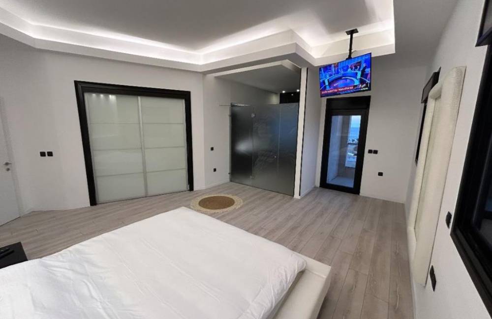 חדר שינה 1: הסוויטה: מיטה זוגית, מסך טלויזיה (כבלים הוט) שידות לאחסון, ארונות לאחסון, מראת גוף, חדר רחצה פרטי הכולל מקלחת ושירותים, מרפסת פרטית עם נוף לים.