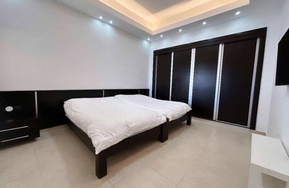 חדר שינה 3 ( חדר ילדים- ממ"ד ): 2 מיטות זוגיות עם אופציה להוספה של 4 מזרונים גדולים, מסך טלויזיה (כבלים הוט), שידות לאחסון, ארונות לאחסון, מראת גוף