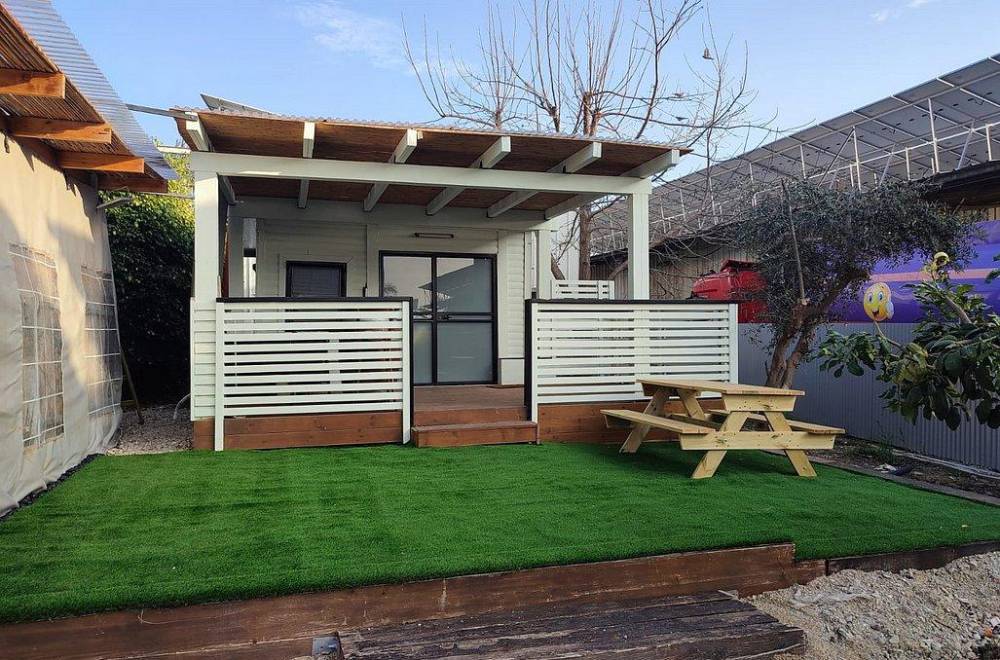 חצר פרטית הכוללת פינת ישיבה ופינת ברביקיו משלה