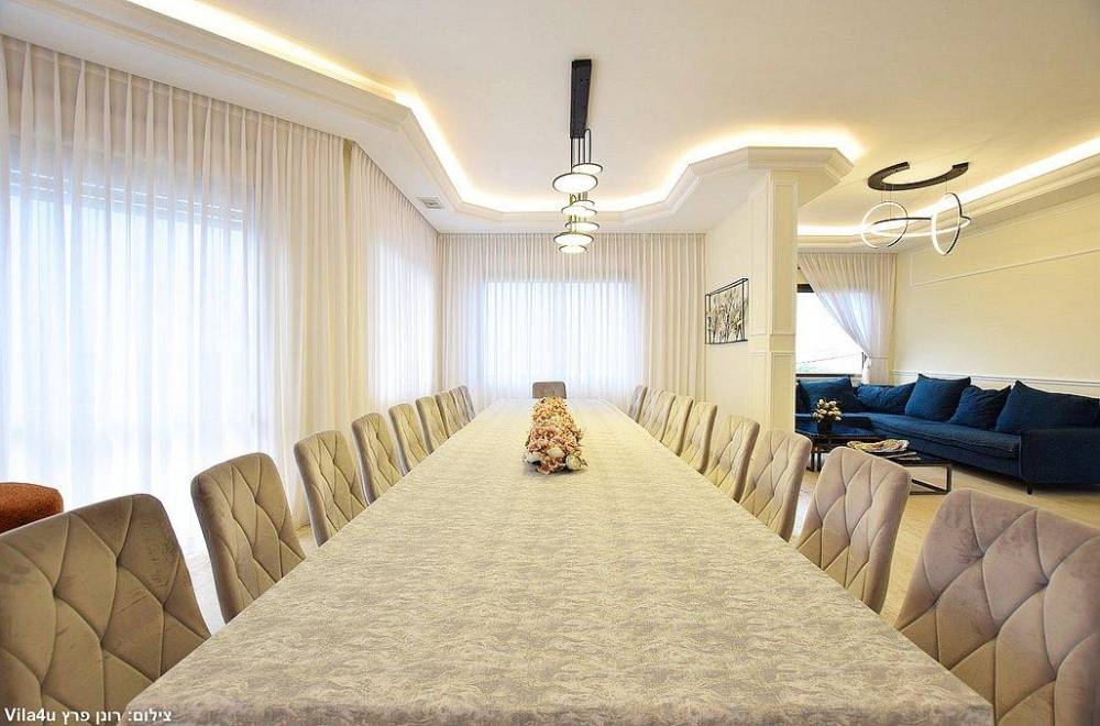 בואו ליהנות עם המשפחה בוילה הכוללת בריכת שחייה גדולה מחוממת מגודרת, טרמפולינה לילדים, 8 חדרי שינה מפנקים, סלון מרווח, מטבח מאובזר ועוד.