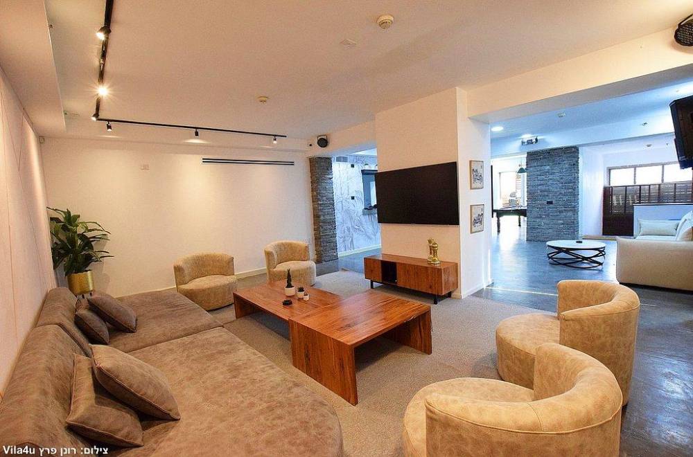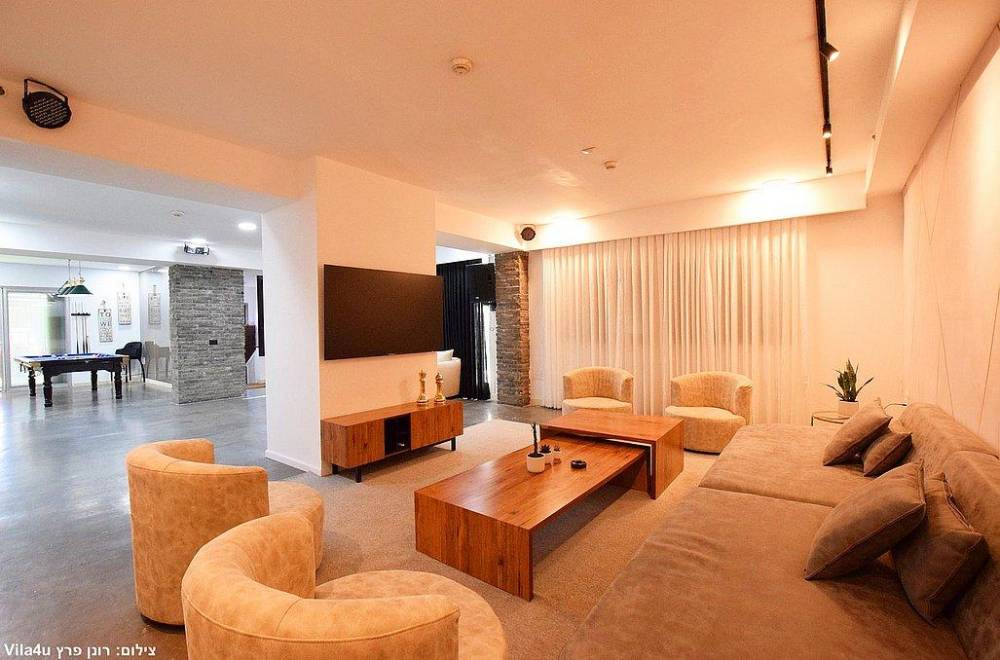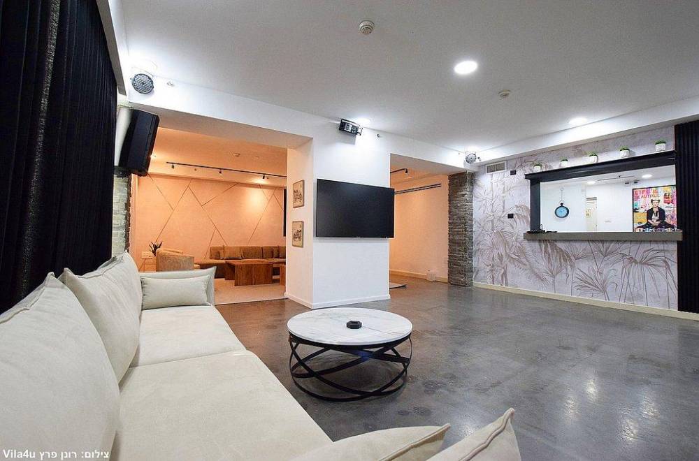 סלון יוקרתי נפתח לספה הכולל מסך צפייה
