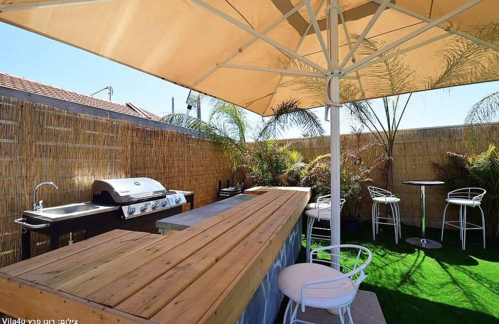 מטבח חוץ עם פינת מנגל גז ופחמים